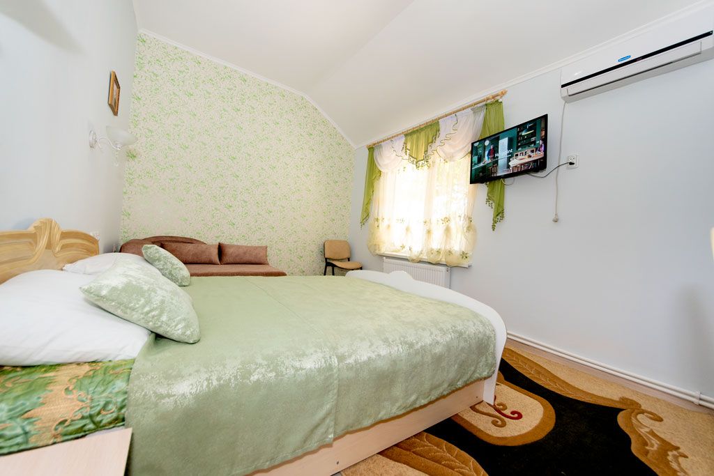 В номерах гостевого дома санузлы, кухни и площадки для отдыха индивидуальны. Имеются веранды для отдыха с зонами барбекю. Кухни оснащены холодильниками, плитами, всей необходимой кухонной утварью, чистящими и моющими средствами. В наличии постельное белье, банные, кухонные полотенца. На окнах москитные сетки. Горячая и холодная вода постоянно. Работают кондиционеры, по желанию можно пользоваться вентиляторами. Сотрудничество с туристической фирмой позволяет желающих отправить в незабываемые путешествия по городу и Крыму. В шаговой доступности от дома расположены магазины, рынок, кафе, парк и море.