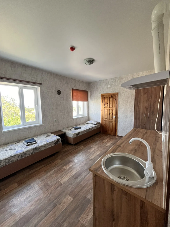Гостевой дом "У Александра" расположена в городе Коктебель, неподалеку от аквапарка и дельфинария. На территории находятся 4 корпуса, детская площадка, бесплатная собственная парковка, общая кухня и зона барбекю. Корпуса «Сруб» находятся на обособленной территории. В 500 м от отеля расположен уникальный комплекс водных аттракционов - аквапарк "Коктебель", специальный детский комплекс которого насчитывает 12 горок. Также на расстоянии 600 м от находится известный на весь Крым дельфинарий "Коктебель" В стоимость входит: проживание, WI-FI, пользование общей кухней, бесплатная парковка, кабельное телевидение, холодильник, беседки со столиками. электроплиты, микроволновка, мангал, шампура, барбекю, детская игровая площадка, качели, беседки.