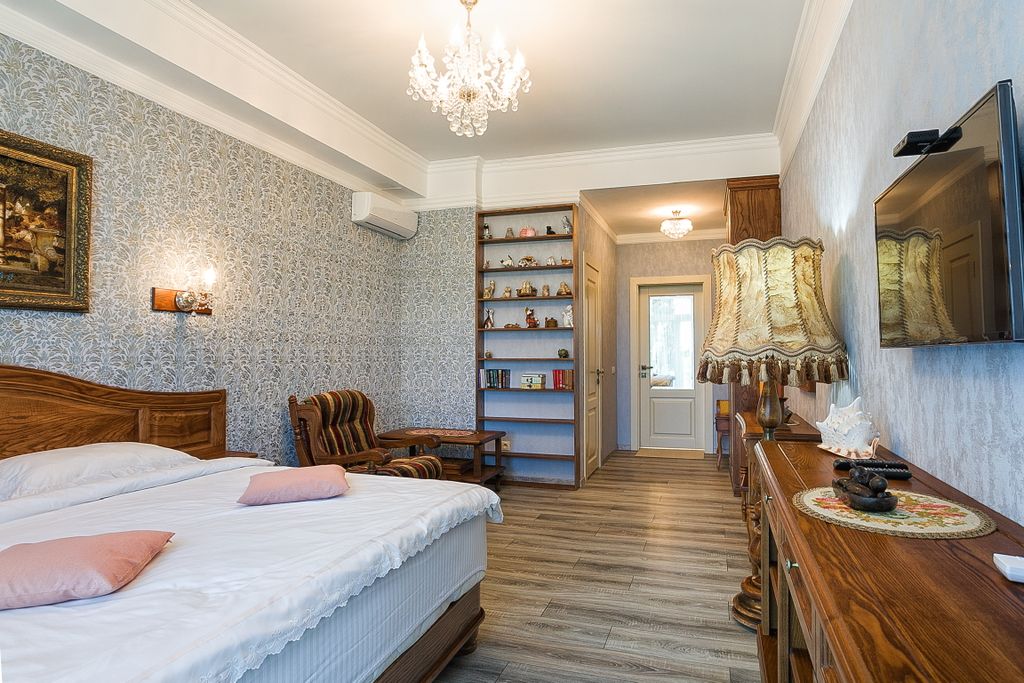 Гостевой дом в Ялте с видом на море и горы. Для гостей отдельный вход. Кухня: холодильник; микроволновая печь; посудомоечная машина индукционная плита; все кухонные принадлежности. Большая гостиная с большим обеденным столом. 4 номера с душем и туалетом, в номере мебель из натурального дерева, кондиционер, спутниковое ТВ. На территории крытая беседка с зоной барбекю и отдыха. Терраса 200 метров с видом на море. На террасе: бассейн; солярий; пергола с обеденной зоной. Большой подземный гараж.