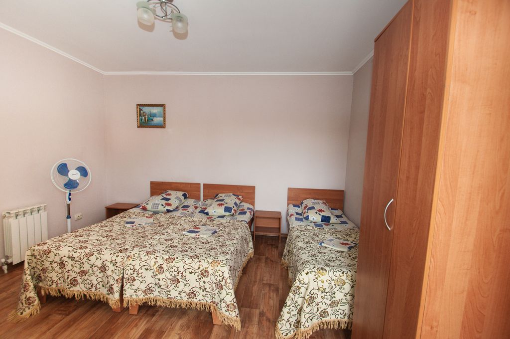 Феодосия - город для отдыха! Предлагаем Вам жильё в частном секторе, в гостевом доме. Номера расположены в отдельно стоящем здании на двух этажах. Имеются номера двух типов: улучшенной комфортности (3 кровати, шкаф, телевизор, холодильник, кондиционер, санузел в номере), эконом - вариант (3 кровати, шкаф, телевизор, холодильник, вентилятор, санузел на этаже на 2 номера ). Возле каждого номера - стол, стулья. Имеется кухня - столовая для самостоятельного приготовления пищи со всеми необходимыми принадлежностями.