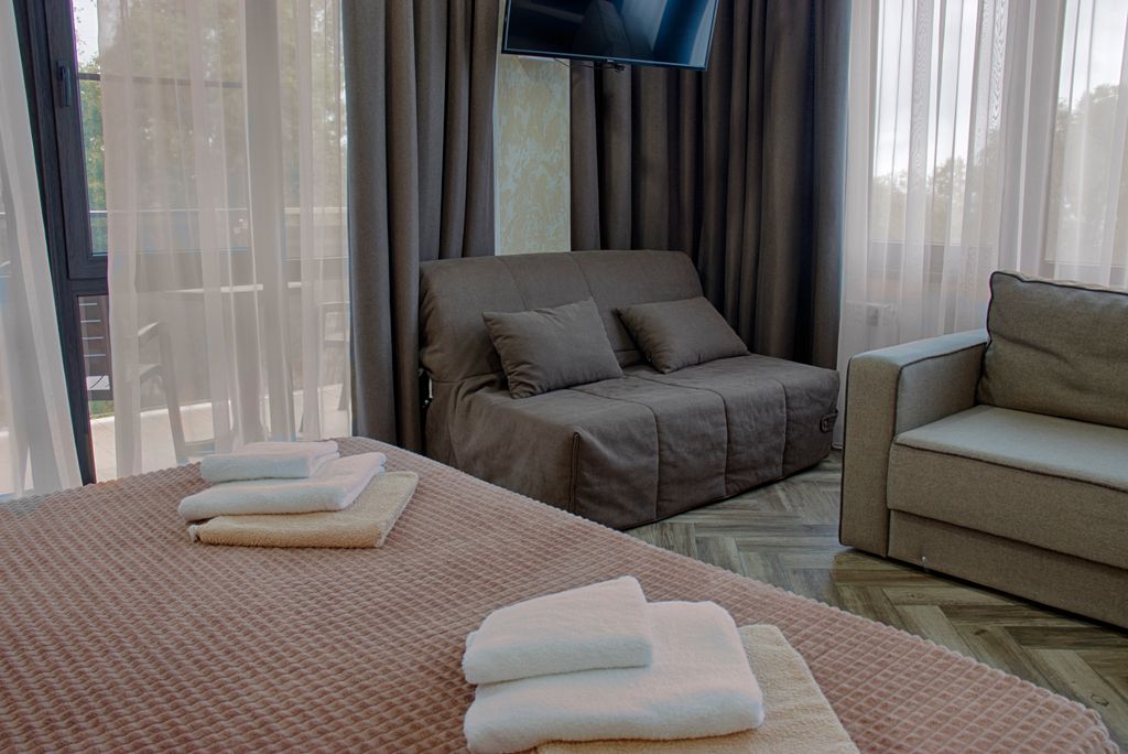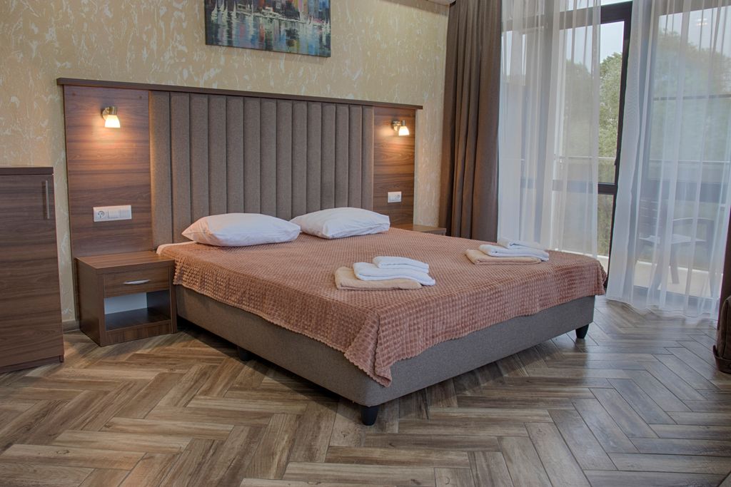 Отель «Омега+» — абсолютно новый отель, откроется с апреля 2021 года. К вашим услугам современный, комфортабельный отель, который находится в самом живописном и экологически чистом районе большого Сочи. Отель расположен недалеко от центра пос. Лазаревское, вдоль берега горной реки Псезуапсе, что позволяет отдыхать спокойно, без шума и суеты. В 400 метрах от комплекса расположен общедоступный пляж Багратион (галька). Проходя по аллее к морю, можно встретить великолепный цветной фонтан. Помимо простого купания в море, есть возможность воспользоваться разнообразными морскими аттракционами: «банан», «таблетка», парашют, скутер, совершить морские прогулки и др. Отель состоит из одного корпуса с номерами: «Стандарт» — 1-комнатные номера вместительностью до 5 чел. и «Семейный» — 2-комнатные номера вместительностью до 6 чел. Элегантно обставленные номера имеют все удобства для полноценного отдыха: они оснащены сплит-системами (кроме цокольного этажа), в номерах установлены холодильник, совреме
