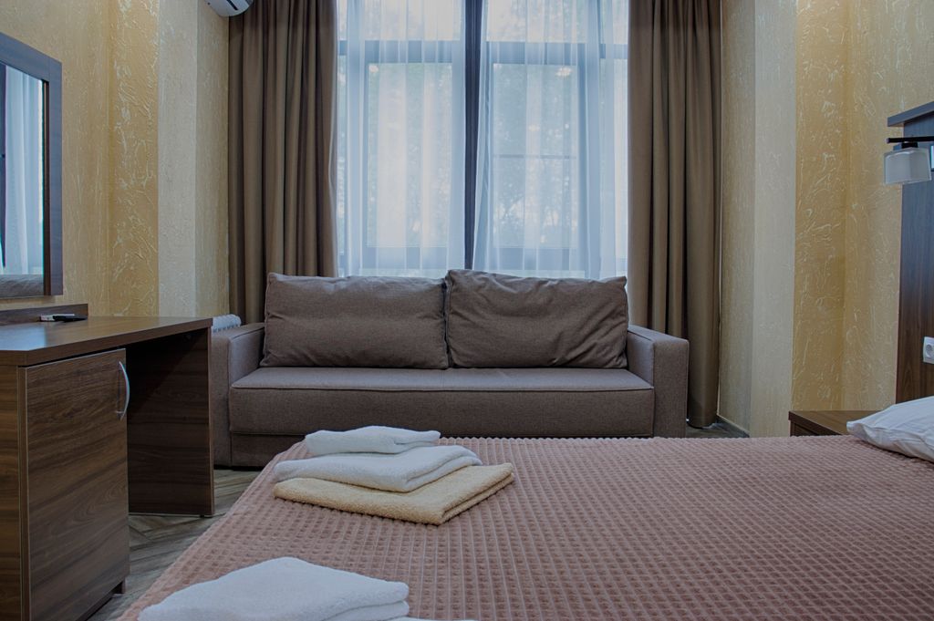 Отель «Омега+» — абсолютно новый отель, откроется с апреля 2021 года. К вашим услугам современный, комфортабельный отель, который находится в самом живописном и экологически чистом районе большого Сочи. Отель расположен недалеко от центра пос. Лазаревское, вдоль берега горной реки Псезуапсе, что позволяет отдыхать спокойно, без шума и суеты. В 400 метрах от комплекса расположен общедоступный пляж Багратион (галька). Проходя по аллее к морю, можно встретить великолепный цветной фонтан. Помимо простого купания в море, есть возможность воспользоваться разнообразными морскими аттракционами: «банан», «таблетка», парашют, скутер, совершить морские прогулки и др. Отель состоит из одного корпуса с номерами: «Стандарт» — 1-комнатные номера вместительностью до 5 чел. и «Семейный» — 2-комнатные номера вместительностью до 6 чел. Элегантно обставленные номера имеют все удобства для полноценного отдыха: они оснащены сплит-системами (кроме цокольного этажа), в номерах установлены холодильник, совреме