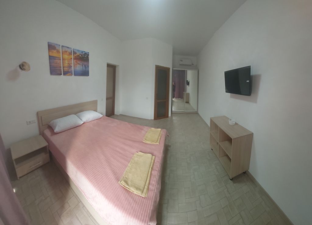 Гостевой дом «Влади» — прекрасное место для семейного отдыха с детьми! Лучшие пляжи Евпатории, просторные и песчаные: «Лазурный берег» и «Супераква» расположены рядом, 15 минут ходьбы. Территория оборудована детской площадкой, зелёной зоной, парковкой, мангальная зона, беседки. Номера оборудованы жк телевизором, спутниковым телевидением, кондиционером, феном, электрочайником, набором посуды для приготовления пищи, туалетной комнатой с большой душевой. Горячая и холодная вода круглосуточно. Номера стандарт имеют отдельный вход и большую террасу. В номере имеется шкаф, двухспальная кровать с ортопедическими матрасами, прикроватные тумбочки, тумба под телевизор, кресло-кровать, стол, стулья. Уборка в номерах через день, мусор выносится горничными ежедневно. Смена белья раз в 5 дней. Дети до 3-х лет бесплатно. До ближайшего магазина 100м. Номерной фонд состоит из 6 благоустроенных двухкомнатных номеров с кухней. И 5 однокомнатные номера с общей кухней столовой.