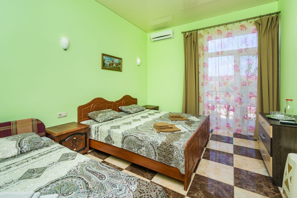 Гостевой дом Georich (Георич) расположен в районе аквапарка, в экологически чистом, тихом районе города Судак, в окружении гор и моря. Дом построен из высококачественных экологически чистых материалов, хорошая звукоизоляция. Комфортабельные меблированные комнаты (2-х, 3-х или 4-х местные), высокие потолки, москитные сетки. В каждом номере, своя ванная комната, круглосуточно холодная и горячая вода. Номера оснащены всем необходимым, числе удобств - кондиционер, холодильник, ЖК-телевизор, сейф, фен. Зеленый двор, растут плодовые деревья, виноград. Есть оборудованная летняя кухня, посуда и столовые приборы отдельно для каждого номера. Во дворе есть детская площадка, зона мангала. Бесплатная парковка, бесплатный доступ в интернет (Wi-Fi). До моря 15 минут пешим шагом, до центра города 10 минут. Продуктовые магазины рядом, до ближайшего магазина 3 минуты пешком. По дороге к морю находятся - кафе, рестораны, магазины, сувенирные павильоны, стадион, аттракционы, аквапарк. Предоставляется