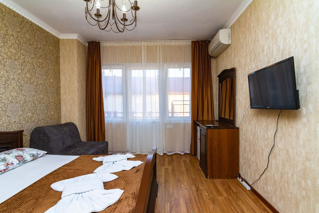 У нас подогреваемый бассейн! Приглашаем вас отдохнуть в самом замечательном гостевом доме «Жасмин», который находится практически на берегу Чёрного моря, всего в двух минутах от благоустроенного и широкого пляжа! Мы хотим предложить вам провести свой отпуск в уютной, домашней атмосфере. Номерной фонд состоит из нескольких категорий номеров. С балконов открывается великолепный вид на море. Номера оборудованы сплит-системой, ЖК-телевизором, мини-холодильником, комплектом полотенец. Для наших гостей предоставляется кухня для самостоятельного приготовления пищи, оборудованная всем необходимым. Для любителей шашлыка имеется зона барбекю с мангалом и беседкой, где вы можете приятно провести вечер. На террасе можно позавтракать, любуясь бескрайними просторами морской глади. Для самых маленьких наших гостей мы оборудовали детскую площадку. Территория гостевого дома закрытая, утопающая в зелени экзотических растений. Вся инфраструктура в шаговой доступности. Для тех, кто не хочет готовить сам,