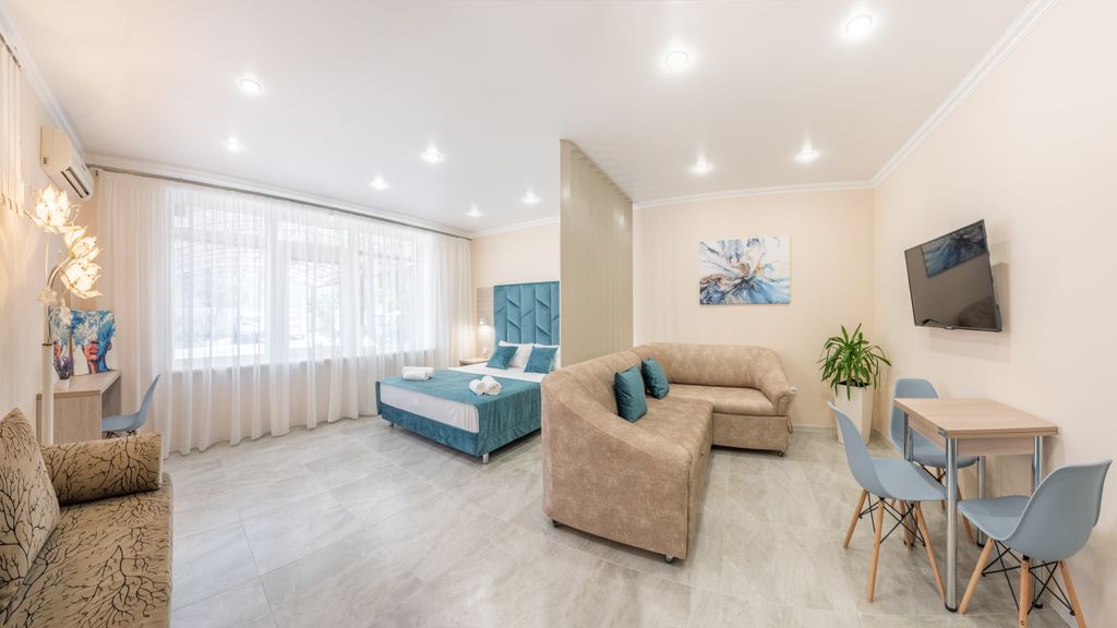 Гостевой дом "Ольга" расположен в тихом уютном районе города-курорта Анапа - район Высокого Берега (Маяк), самый зеленый и комфортный район Анапы. Адрес: 353440, Краснодарский край, г-к Анапа, ул. Крымская 19. В 7-10 минутах ходьбы от гостевого дома расположен галечный и каменный пляж, здесь самое чистое море. Номера полностью соответствуют требованиям Системы классификации средств размещения. Все номера оснащены удобствами для комфортного отдыха (сан-узел, кондиционер, холодильник, телевизор). Имеется уютный зеленый дворик, где можно как просто отдохнуть, так и приготовить шашлык на мангале. Для гостей оборудована самостоятельная кухня, столики для приема пищи. На заказ повар готовит завтраки, выпечку, блины. Номера в гостевом доме убираются ежедневно. Мы следим за порядком и чистотой в здании и дворе гостиницы. Услуги парковки, интернет (Wi-Fi) оказываются бесплатно. На каждом этаже гостевого дома имеется гладильная доска, утюг, чайник. Дополнительно оказываются услуги