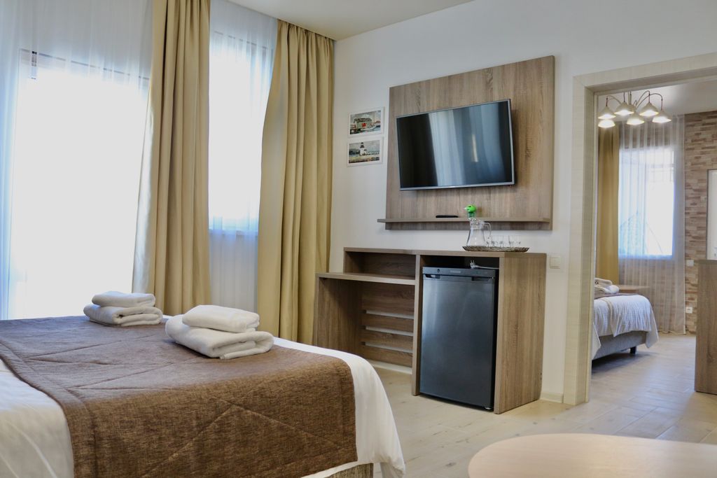 Велес инн расположен в тихом, спокойном районе города Феодосии, в шаговой доступности, почти, все достопримечательности города, недалеко пляж на любой вкус «Песчаный» или «Камушки» 5-12 минут ходьбы, рядом большой парк с детскими развлекательными аттракционами, магазины, супермаркеты, кондитерские, кафе, рынок с крымскими фруктами и овощами, а сама набережная в 5 минутах ходьбы через парковую зону. На территории, есть отдельное помещение столовая, где можно разогреть пищу, всегда есть очищенная питьевая холодная и горячая вода, бесплатный, утренний кофе или чай. Для комфортного проживания у каждой комнаты, предусмотрена личная терраса с летней мебелью, где могут проходить ваши завтраки, есть бесплатная парковка, для вашего автомобиля на закрытой территории. В наличии: Стандарт «семейный» - в комнате двуспальная кровать с ортопедическим матрасом "комфорт"+ дополнительное место — ортопедический диван (125*200) комфортный, удобный, для вашего ребенка. На диване могут размест
