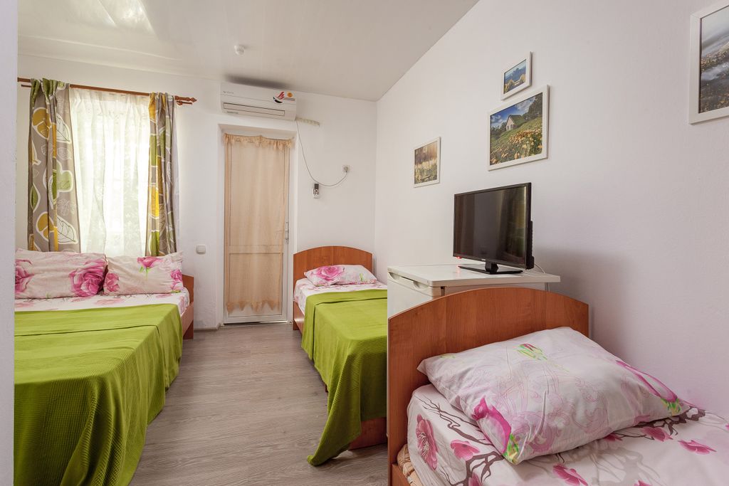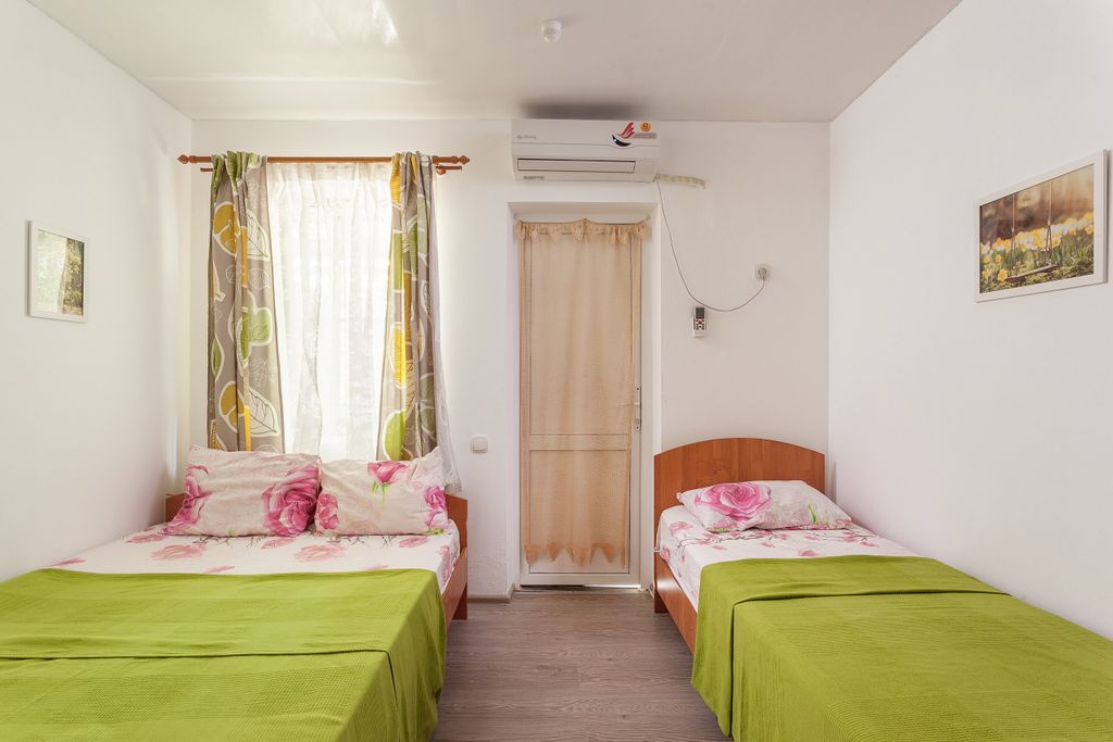 Перед тем, как Вы подробно ознакомитесь с нашей информацией, хотим кратко рассказать о маленьких плюсах, которые помогут определиться с выбором: Мы успешно принимаем гостей с 2007 года. Каждый год во всех жилых помещениях делаем косметический ремонт. На всех этапах бронирования и проживания Вас сопровождают радушные хозяева. Предлагаем размещения от 1 до 10 человек. На территории расположены бассейн с подогревом размером 5,5 на 10 метров и большая зона отдыха с шезлонгами. —Наши самые дорогие гости это дети. Можно ходить, лазить, бегать где угодно. Газоны для того чтобы ходить. Просторная, огороженная со всех сторон территория, где дети почувствуют себя самостоятельными, находясь при этом в вашем поле зрения. Две детские площадки, детский игровой комплекс, отдельная беседка для детей, волейбольная площадка. Три раза в день для детей от 4 лет групповые занятия с Аниматором в специально оборудованной беседке. —Всё что растёт на деревьях и кустарниках можно дегустировать (вишня, черешня