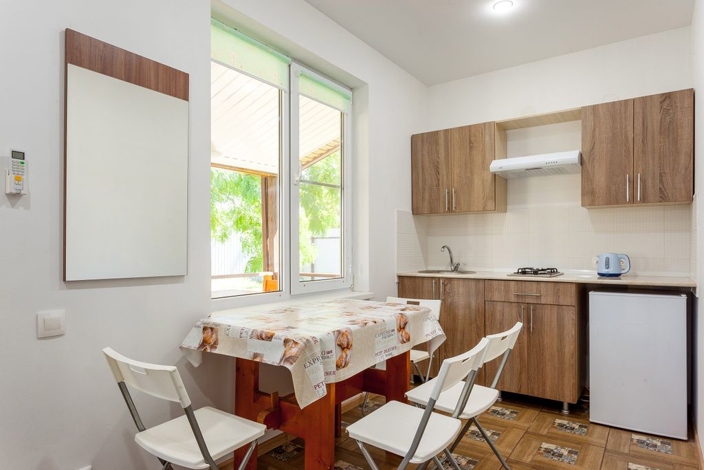 Перед тем, как Вы подробно ознакомитесь с нашей информацией, хотим кратко рассказать о маленьких плюсах, которые помогут определиться с выбором: Мы успешно принимаем гостей с 2007 года. Каждый год во всех жилых помещениях делаем косметический ремонт. На всех этапах бронирования и проживания Вас сопровождают радушные хозяева. Предлагаем размещения от 1 до 10 человек. На территории расположены бассейн с подогревом размером 5,5 на 10 метров и большая зона отдыха с шезлонгами. —Наши самые дорогие гости это дети. Можно ходить, лазить, бегать где угодно. Газоны для того чтобы ходить. Просторная, огороженная со всех сторон территория, где дети почувствуют себя самостоятельными, находясь при этом в вашем поле зрения. Две детские площадки, детский игровой комплекс, отдельная беседка для детей, волейбольная площадка. Три раза в день для детей от 4 лет групповые занятия с Аниматором в специально оборудованной беседке. —Всё что растёт на деревьях и кустарниках можно дегустировать (вишня, черешня