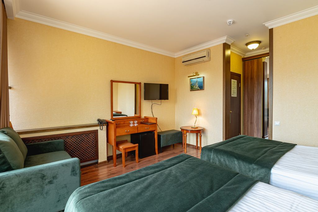 Отдых, проведенный в окружении невероятных горных и морских пейзажей, подарит незабываемые впечатления. В каждом номере есть все необходимое даже для самых требовательных -гостей: -кондиционер; -мини-бар; -туалетные принадлежности; -фен; -косметические средства известных производителей. Каждый номер любой категории порадует Вас уютом и благоустроенностью. В стоимость проживания входит: -континентальный завтрак; -интернет; -туалетные принадлежности; -тапочки; -халат. Благодаря близкому расположению моря и интересных достопримечательностей курорта Вы избавитесь от утомительных походов. Недалеко находится: -благоустроенный галечный пляж; -дом-музей Чехова; -церковь Св. Рипсиме; -винзавод «Массандра»; -Массандровский дворец; -Ливадийский дворец; -Замок «Ласточкино гнездо»; -канатная дорога на Ай-Петри. Вас ждет приятная прогулка по просторной набережной курорта, которая приведет Вас в роскошный Приморский парк. А многочисленные достопримечательности Ялты не дадут Вам скучать. Многие из них