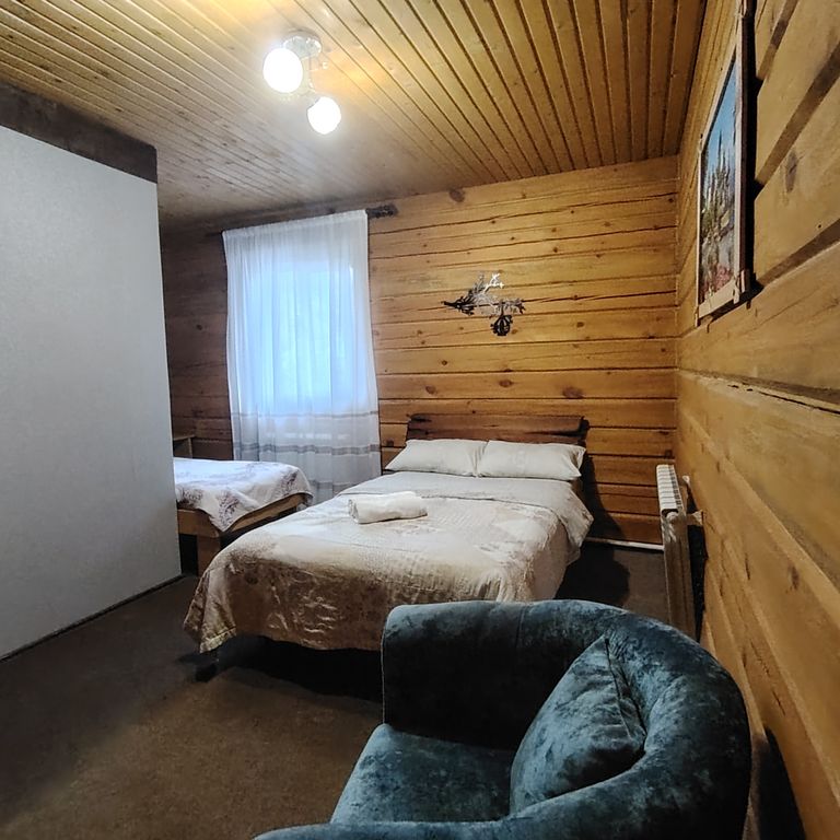 Горное шале из кедра! При входе ощущается запах древесины, в таком доме легко дышится и спится, оказывая благотворное влияние на организм человека. Для ценителей экоотдыха! Живописная местность, лес в 10 метрах, вид на горы. Шаговая доступность к курортной зоне, курортной инфраструктуре. Ул. Алтайская, одна из самых живописных и красивейших улиц Белокурихи. Можем принять от 1 до 35 гостей. Шале состоит из основного и малого корпуса. На втором этаже основного 4 номера, два по 35 кв. М, два по 20кв. М Каждый оборудован собственным с/у. В номере холодильник, телевизор, чайник, двуспальная кровать и диван. В цокольном этаже расположен банкетный зал(60кв) с камином, огромным столом из массива дуба, мягкой зоной, лавками, телевизор, муз. Центр, зона кухни, где есть всё необходимое для самостоятельного приготовления пищи. Из банкетного зала, выход в банный комплекс. Баня на дровах, с просторной парной, моечной, с ледяной водой из ведра перевертыша, огромной комнатой отдыха. При зак