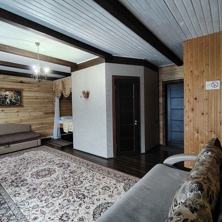 Горное шале из кедра! При входе ощущается запах древесины, в таком доме легко дышится и спится, оказывая благотворное влияние на организм человека. Для ценителей экоотдыха! Живописная местность, лес в 10 метрах, вид на горы. Шаговая доступность к курортной зоне, курортной инфраструктуре. Ул. Алтайская, одна из самых живописных и красивейших улиц Белокурихи. Можем принять от 1 до 35 гостей. Шале состоит из основного и малого корпуса. На втором этаже основного 4 номера, два по 35 кв. М, два по 20кв. М Каждый оборудован собственным с/у. В номере холодильник, телевизор, чайник, двуспальная кровать и диван. В цокольном этаже расположен банкетный зал(60кв) с камином, огромным столом из массива дуба, мягкой зоной, лавками, телевизор, муз. Центр, зона кухни, где есть всё необходимое для самостоятельного приготовления пищи. Из банкетного зала, выход в банный комплекс. Баня на дровах, с просторной парной, моечной, с ледяной водой из ведра перевертыша, огромной комнатой отдыха. При зак