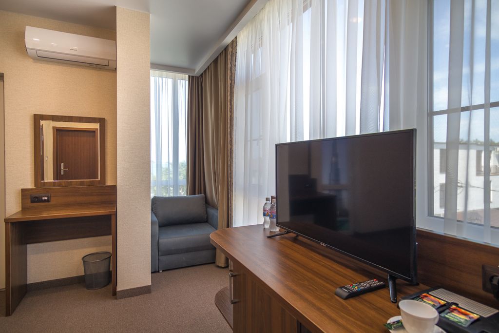 Новый отель находится в с. Кабардинке двух минутах ходьбы до моря или 150 метрах от моря и набережной Кабардинки. Также на территории столовая, кафе, рядом магазин, аптека, сувенирные и курортные товары, детский парк развлечений, на территории есть автостоянка, оплачивается отдельно есть бассейн, детская площадка, кафе турецкий хамам (бесплатно). К услугам гостей высококлассные комфортные уютные просторные номера оснащённые новой современной гостиничной мебелью. В каждом номере есть кондиционер, телевизор, работает Wi-Fi, сейф халаты тапочки есть чайник чай кофе косметические принадлежности номера в современном стиле и в каждом индивидуальный санузел с круглосуточной подачей холодной и горячей воды.