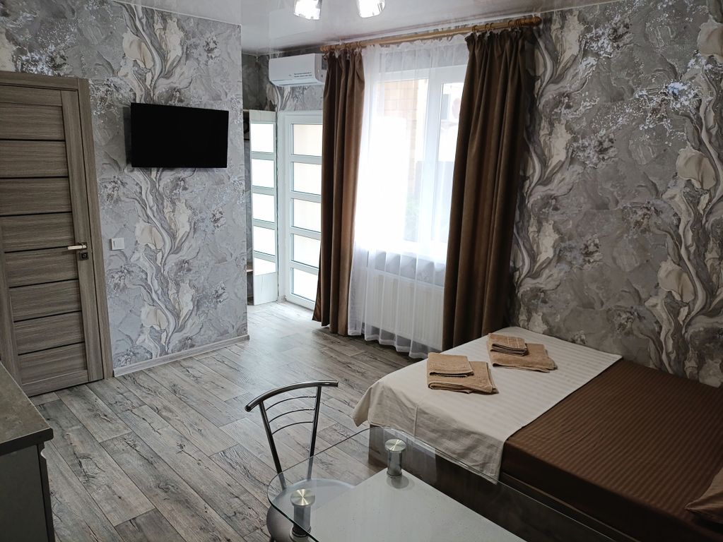 Гостевой дом «Хельга у моря». Уютные дизайнерские номера. Кухня в каждом номере со всей необходимой посудой и микроволновкой, кондиционер, ТВ-плазма, общая стиральная машинка-автомат, гладильная доска, утюг, бесплатный Wi-Fi. До моря 1 минута ходьбы и лучшего в городе песчаного пляжа «Оазис» и «Солярис». Есть парковка для автомобилей. В 20 метрах продуктовый магазин, развитая инфраструктура, центральный рынок. Рядом в 50 метрах ресторан «Корсар», кафе «Дача». Также в 3-х минутах от дома находится отель «Риберра», где можно пройти спа-процедуры. До набережной им. Терешковой и исторической части города 5 минут пешком, пешеходный исторический маршрут «Малый Иерусалим», караимские кинасы, кафе-театр «Мустафа», музеи, ресторанчики, кафе, выставки, уличная торговля сувенирами и т. д. Культурно-этнографический центр «Одун-базар къапусы», часть средневековой крепостной стены конца XV века, этнографический музей с макетом средневекового города, кофейню «Кезлев къавеси», этно-ресторан «Дж