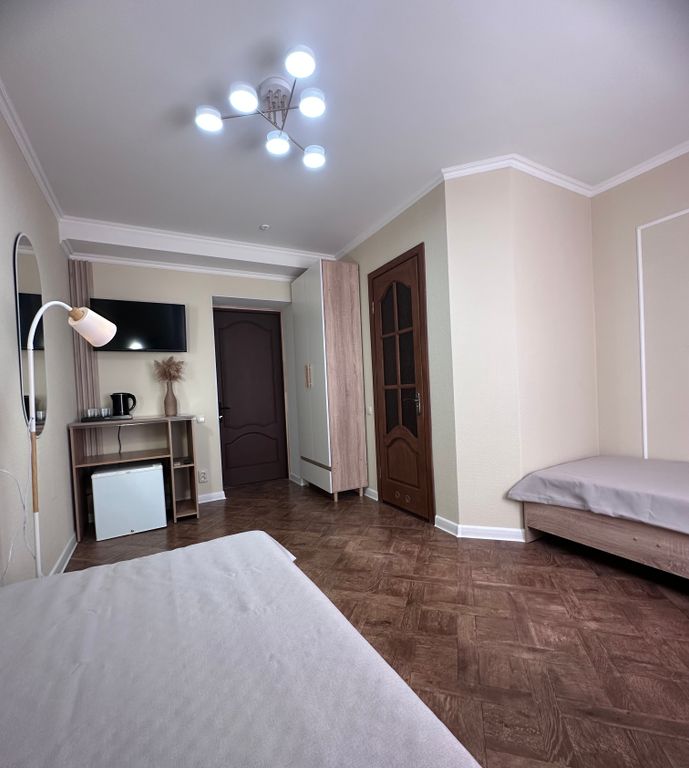 Гостевой дом «Морская звезда» расположен в посёлке Оленевка. До пляжа можно дойти всего за 10–15 минут. На территории имеются сад, терраса, принадлежности для барбекю и другие удобства. Гости могут пользоваться крытым бассейном и бесплатной частной парковкой. Предоставляется бесплатный Wi-Fi. Ежедневно в гостевом доме «Морская звезда» предлагается континентальный завтрак или завтрак по меню. Для детей обустроена игровая площадка. В гостевом доме «Морская звезда» можно поиграть в настольный теннис и дартс. Окрестности популярны среди любителей велосипедных прогулок. К вашим услугам: Комфортные номера Тихий семейный отдых Кафе-столовая Бассейн Беседки для отдыха и барбекю Детская площадка Красивая ухоженная территория Парковка Прачечная Отличное настроение и самое чистое море в Крыму Разнообразие цветового решения, удобная мебель, чистота и уют номеров сделают ваш отдых незабываемым. Расстояния: - Пляж песчаный — 10–15 минут - Центр — 15 минут - Центр развлечений — 10 минут - Аквап
