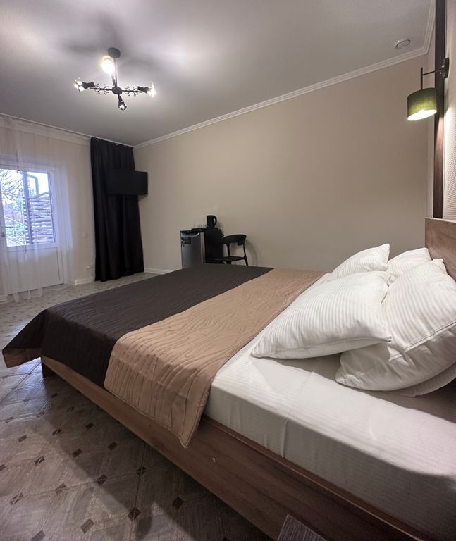Гостевой дом «Морская звезда» расположен в посёлке Оленевка. До пляжа можно дойти всего за 10–15 минут. На территории имеются сад, терраса, принадлежности для барбекю и другие удобства. Гости могут пользоваться крытым бассейном и бесплатной частной парковкой. Предоставляется бесплатный Wi-Fi. Ежедневно в гостевом доме «Морская звезда» предлагается континентальный завтрак или завтрак по меню. Для детей обустроена игровая площадка. В гостевом доме «Морская звезда» можно поиграть в настольный теннис и дартс. Окрестности популярны среди любителей велосипедных прогулок. К вашим услугам: Комфортные номера Тихий семейный отдых Кафе-столовая Бассейн Беседки для отдыха и барбекю Детская площадка Красивая ухоженная территория Парковка Прачечная Отличное настроение и самое чистое море в Крыму Разнообразие цветового решения, удобная мебель, чистота и уют номеров сделают ваш отдых незабываемым. Расстояния: - Пляж песчаный — 10–15 минут - Центр — 15 минут - Центр развлечений — 10 минут - Аквап
