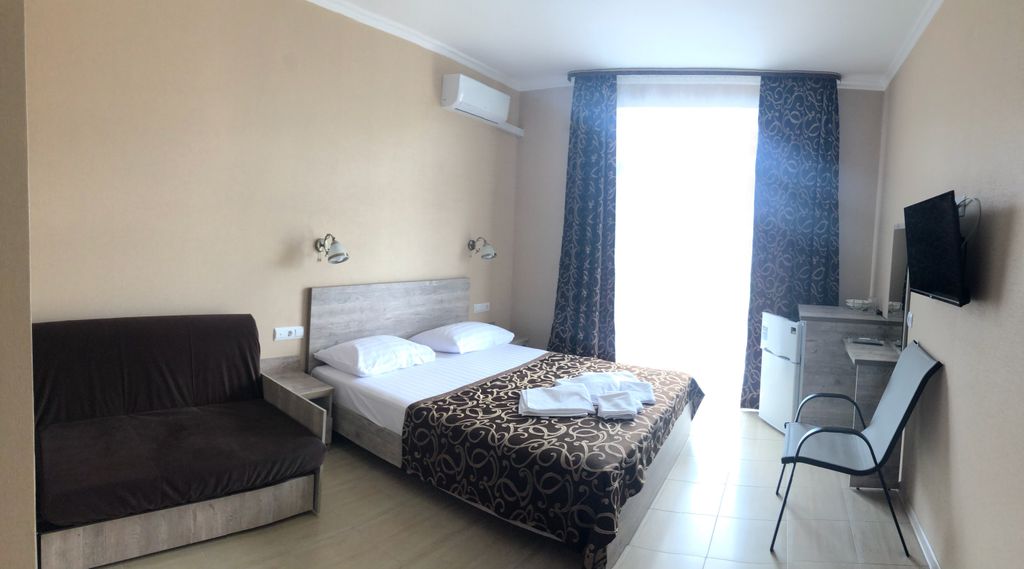 Гостиница «эфтихия» расположена в курортном поселке витязево в 14 километрах от центра анапы. В поселке хорошо развита инфраструктура и есть все необходимое для отдыха — кафе, бары, магазины, развлечения. В 5 минутах ходьбы — аквапарк и главная туристическая улица — бульвар паралия. До железнодорожного вокзала и аэропорта — чуть менее 9 километров. Отель занимает небольшую охраняемую территорию с внутренним двором. Гостей ожидают уютные и стильные однокомнатные номера стандарт, комфорт, а также двухкомнатные люксы. Везде есть собственный душ, кондиционер и необходимый набор техники, во всех номерах предусмотрены меблированные балконы. При гостинице работает небольшая столовая, где можно заказать трёхразовое питание. В распоряжении отдыхающих открытый бассейн, парковка, беспроводной интернет. Юных гостей развлекают аниматоры, есть зона для игр с качелями и батутом, а малышам отель предоставляет в аренду прогулочные коляски и детские кроватки. До песчаного пляжа всего 250 метров. Пляж
