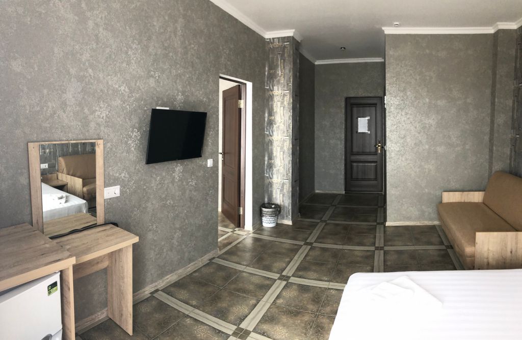 Гостиница «эфтихия» расположена в курортном поселке витязево в 14 километрах от центра анапы. В поселке хорошо развита инфраструктура и есть все необходимое для отдыха — кафе, бары, магазины, развлечения. В 5 минутах ходьбы — аквапарк и главная туристическая улица — бульвар паралия. До железнодорожного вокзала и аэропорта — чуть менее 9 километров. Отель занимает небольшую охраняемую территорию с внутренним двором. Гостей ожидают уютные и стильные однокомнатные номера стандарт, комфорт, а также двухкомнатные люксы. Везде есть собственный душ, кондиционер и необходимый набор техники, во всех номерах предусмотрены меблированные балконы. При гостинице работает небольшая столовая, где можно заказать трёхразовое питание. В распоряжении отдыхающих открытый бассейн, парковка, беспроводной интернет. Юных гостей развлекают аниматоры, есть зона для игр с качелями и батутом, а малышам отель предоставляет в аренду прогулочные коляски и детские кроватки. До песчаного пляжа всего 250 метров. Пляж