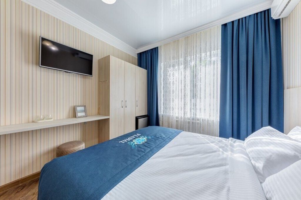 Внимание! Внимательно прочтите условия проживания! Принимаем детей от 7 лет в двухместные и трехместные номера; в студии возможно заселение с детьми любого возраста. С животными проживание невозможно. Курение в номерах запрещено. Шумные вечеринки запрещены. Владиаль – гостевой дом в Геленджике. Территория Во дворе 2 уличных шатра со столами и стульями. В общей зоне чайник, микроволновка, микро-плита (сковорода и кастрюля). Столовые принадлежности в ассортименте. Штопор. Каждый стол укомплектован пепельницей. Номера и удобства В гостевом доме 15 номеров с кондиционерами, телевизорами и холодильниками. 8 номеров – двухместные, 4 – трехместные. В каждом номере свой санузел. МП-окна обеспечивают хорошую звукоизоляцию в номере. Шторы из светонепроницаемого и жаростойкого материала “Блэкаут”. Собственные ванные комнаты укомплектованы полотенцами и бесплатными туалетно-косметическими принадлежностями. Среди удобств – общая кухня с микроволновой печью и чайником. Гостям бесплатно предоставл