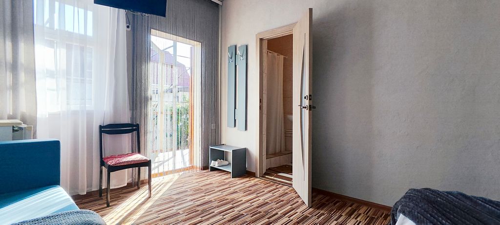 «Домик у моря» — это небольшой гостевой дом с домашней атмосферой, это наше семейное дело, мы с теплотой принимаем всех гостей, и стараемся создать комфортные условия для вашего отдыха. Наш гостевой дом имеет 14 номеров категории эконом, стандарт, комфорт, так же у нас имеются большие двухкомнатные апартаменты на 5−6 человек для большой семьи или компании. Мы расположены в центре города, в тихом районе. В шаговой доступности остановки общественного транспорта, магазины, центральная набережная с многочисленными развлечениями, аквапарк ну и, конечно, пляж! У нас красивая ухоженная территория, много зелени и цветов. Во дворе бассейн для взрослых и бассейн для детей, а так же площадка с зоной отдыха. Для развлечения гостей имеется стол для настольного тенниса. Для всех гостей в свободном доступе кухня для самостоятельного приготовления, и столовая зона. Кухня оборудована необходимой техникой, есть посуда и столовые приборы. Так же имеется гладильная доска и утюг, по запросу