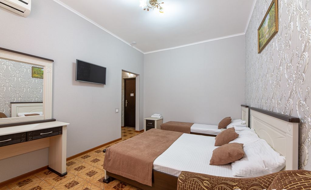 Современный, уютный отель в центре – поселка Витязево. Отель расположен в 10 минутах ходьбы до моря и аквапарка «Олимпия». Рядом с отелем расположена своя парковка. На территории отеля есть столовая, подогреваемый бассейн, детская площадка, терраса для отдыха. Новые номера, современный дизайн идеально подходят для комфортного отдыха, как для взрослых, так и маленьких гостей. К услугам гостей, бесплатный wi-fi, круглосуточная стойка регистрации, анимация для детей и взрослых. В шаговой доступности - вся инфраструктура городских развлечений, каруселей, магазинов, аптека, кафе, рестораны и торговых центров. Рядом с отелям расположен санаторий аквамарин, в котором можно приобрести оздоровительные курсы, лечебные и spa-процедуры! Индивидуальный подход к каждому клиенту, чистый морской воздух, теплое и ласковое солнце - создадут идеальные условия для вашего отдыха. Индивидуальный подход к каждому клиенту, чистый морской воздух, теплое и ласковое солнце - создадут идеальные условия для вашего