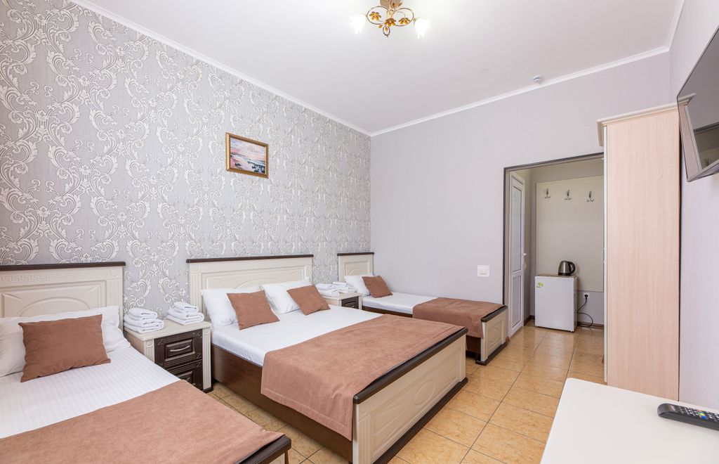 Современный, уютный отель в центре – поселка Витязево. Отель расположен в 10 минутах ходьбы до моря и аквапарка «Олимпия». Рядом с отелем расположена своя парковка. На территории отеля есть столовая, подогреваемый бассейн, детская площадка, терраса для отдыха. Новые номера, современный дизайн идеально подходят для комфортного отдыха, как для взрослых, так и маленьких гостей. К услугам гостей, бесплатный wi-fi, круглосуточная стойка регистрации, анимация для детей и взрослых. В шаговой доступности - вся инфраструктура городских развлечений, каруселей, магазинов, аптека, кафе, рестораны и торговых центров. Рядом с отелям расположен санаторий аквамарин, в котором можно приобрести оздоровительные курсы, лечебные и spa-процедуры! Индивидуальный подход к каждому клиенту, чистый морской воздух, теплое и ласковое солнце - создадут идеальные условия для вашего отдыха. Индивидуальный подход к каждому клиенту, чистый морской воздух, теплое и ласковое солнце - создадут идеальные условия для вашего
