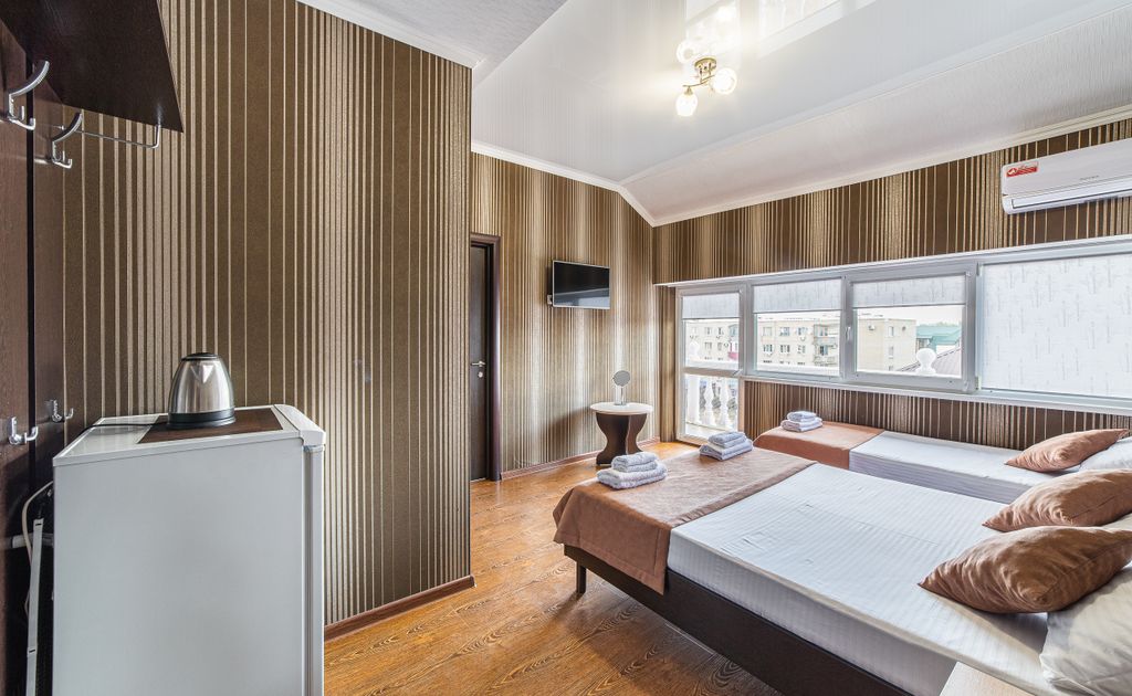 Современный, уютный отель в центре – поселка Витязево. Отель расположен в 10 минутах ходьбы до моря и аквапарка «Олимпия». Рядом с отелем расположена своя парковка. На территории отеля есть столовая, подогреваемый бассейн, детская площадка, терраса для отдыха. Новые номера, современный дизайн идеально подходят для комфортного отдыха, как для взрослых, так и маленьких гостей. К услугам гостей, бесплатный wi-fi, круглосуточная стойка регистрации, анимация для детей и взрослых. В шаговой доступности - вся инфраструктура городских развлечений, каруселей, магазинов, аптека, кафе, рестораны и торговых центров. Рядом с отелям расположен санаторий аквамарин, в котором можно приобрести оздоровительные курсы, лечебные и spa-процедуры! Индивидуальный подход к каждому клиенту, чистый морской воздух, теплое и ласковое солнце - создадут идеальные условия для вашего отдыха. Индивидуальный подход к каждому клиенту, чистый морской воздух, теплое и ласковое солнце - создадут идеальные условия для вашего