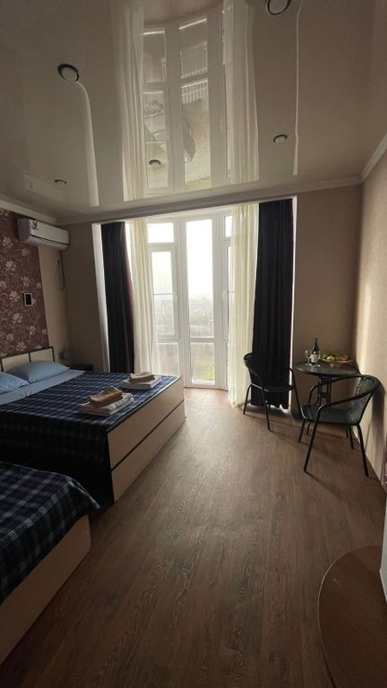 Гостевой дом "Микаэль" расположен в 50 метрах от пляжа в поселке Кучугуры, Краснодарского края. Вас ждут 18 комфортабельных номеров оборудованных всем необходимым (кондиционеры, холодильник, ТВ, полотенца) с видом, как на море, так и на сад, с балконам и без (панорамные окна в пол). На территории располагается столовая работающая, как по системе завтраки, так и как полный пансион. Также на первом этаже гостевого дома расположена общая кухня со всем необходимым. Для вашего досуга на территории предусмотрены: зона барбекю, бассейн, детская площадка, батут, самокаты, детские электромобили (за отдельную плату), ракетки для игры в бадминтон и многое другое. В 5 минутах от гостевого дома расположены магазины, торговые лавочки, рестораны, большое количество развлечений для детей: картинг, парк аттракционов, батутный городок, водные аттракционы, страусиная ферма. В посёлке Кучугуры есть термальные источники, грязевые вулканы и фруктовые сады. Частная территория гостевого дома зани