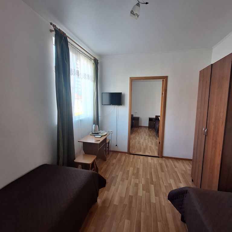 Гостевой дом "Арина" расположен в центральной части Адлера. Гостевой дом располагает двух-, трёх- и четырёхместными номерами стандартной комплектации: телевизор, кондиционер, холодильник, чайник, wi-fi. Постельное бельё и полотенца предоставляется для всех гостей. При длительном проживание (от 7 дней) предусматривается замена постельного белья и полотенца, а так же уборка номера по запросу. Так же некоторые номера имеют собственный балкон. Кухня общая, находится на придомовой территории, оснащена двумя четырёхконфорочными плитами, двумя раковинами, свч-печью и стиральной машинкой. Для удобства гостей имеется стандартный набор посуды. Имеются бесплатные парковочные места, наличии свободных необходимо уточнять заранее перед бронированием. В шаговой доступности пляж, продуктовый магазин, аптека, центральный рынок, трц Plaza, трц Новый век и рк Мандарин