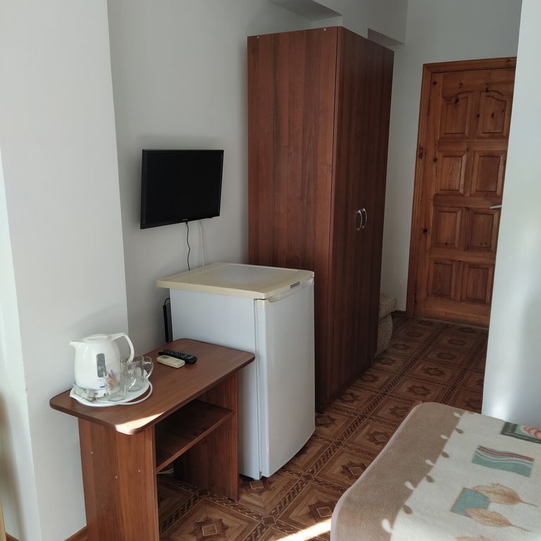 Гостевой дом "Арина" расположен в центральной части Адлера. Гостевой дом располагает двух-, трёх- и четырёхместными номерами стандартной комплектации: телевизор, кондиционер, холодильник, чайник, wi-fi. Постельное бельё и полотенца предоставляется для всех гостей. При длительном проживание (от 7 дней) предусматривается замена постельного белья и полотенца, а так же уборка номера по запросу. Так же некоторые номера имеют собственный балкон. Кухня общая, находится на придомовой территории, оснащена двумя четырёхконфорочными плитами, двумя раковинами, свч-печью и стиральной машинкой. Для удобства гостей имеется стандартный набор посуды. Имеются бесплатные парковочные места, наличии свободных необходимо уточнять заранее перед бронированием. В шаговой доступности пляж, продуктовый магазин, аптека, центральный рынок, трц Plaza, трц Новый век и рк Мандарин