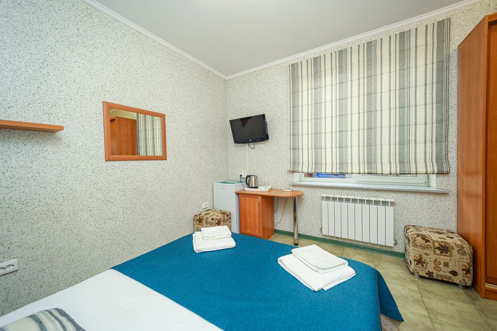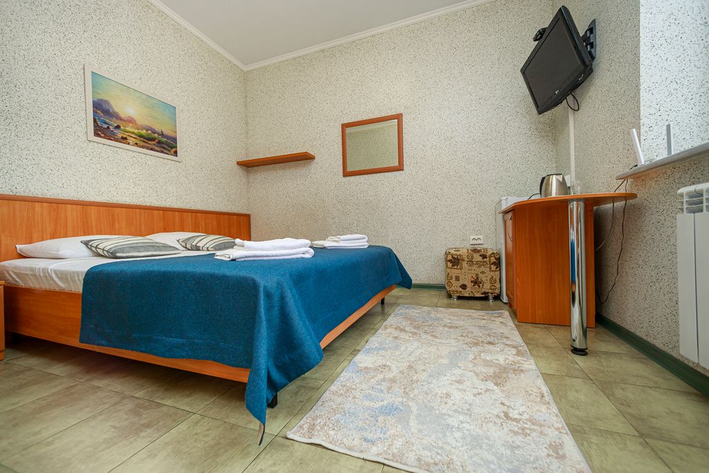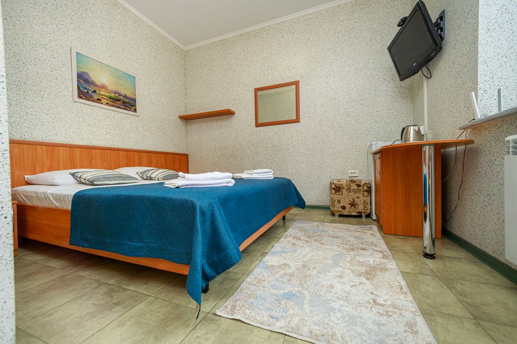 Гостевой дом располагается в самом центре города на набережной курорта рядом. На общем балконе увитого виноградом для каждого номера предусмотрены столики и стулья. Гостевой дом имеет 3 этажа, на 1 этаже общая зона отдыха где располагаются столики. В отдельном строении для готовки имеется микроволновая печь и все удобства для приготовления пищи. В каждом номере имеется телевизор, холодильник, чайник, шкаф купе. Главное преимущество состоит в том что, вокруг находятся большое количество развлечений: Аквапарк Дельфин, океанариум, парк развлечений, а расстояние до песчаного пляжа всего 50 метров. До центрального пирса, откуда отходят морские прогулки спокойным шагом не более 3 минут.