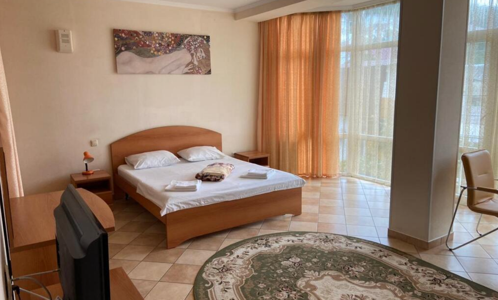 Отель расположен в 50 метрах от Пляжа «Дельфин» в поселке Лазаревское (Большое Сочи). В отеле функционирует собственное кафе, гостям предоставляется питание по меню (завтраки включены в стоимость номера на основные места). Обновление отеля произведено в 2019 году. Отель оборудован системой охраны и камерами видео наблюдения. Стойка регистрации круглосуточно. Все номера оборудованы индивидуальными сан. узлами и кондиционерами, телевизорами, холодильниками. Номера категории "Люкс" и "Делюкс" имеют просторные индивидуальные балконы, все остальные категории оборудованы видовыми окнами и французскими балконами, так же на каждом этаже есть общие балконы с зонами для отдыха. На каждом этаже куллеры с горячей и холодной водой.