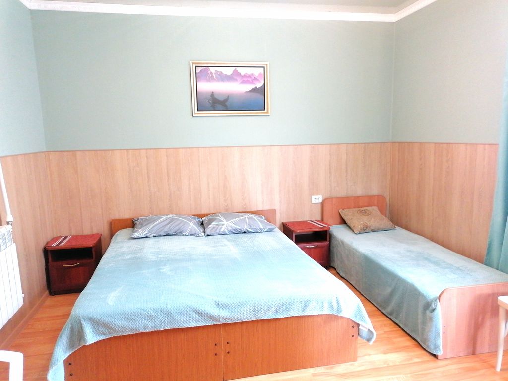 Гостевой дом располагается в Адлере, на тихой и зелёной улице. От остановок «Вагонное депо» и «Изумруд» идти 7–8 минут. Рядом аптека, супермаркет «Магнит», различные кафе. До моря 15–20 минут ходьбы. До ж/д вокзала 2 км, до аэропорта 5 км. До центра Адлера и Красной поляны 15–30 минут на транспорте. В шаговой доступности (15–20 минут) находится Курортный городок, где располагаются галечные пляжи с шезлонгами и зонтами, дельфинарий, океанариум, парк динозавров, различные кафе и столовые, развлекательные центры, парковые зоны. К услугам отдыхающих имеются три номера эконом-размещения с общим душем и туалетом, двухместные и трёхместные номера с отдельным санузлом. В комнатах есть телевизор с плоским экраном, кондиционер, мини-холодильник, бесплатный интернет. На кухне общего пользования можно приготовить пищу, имеются все кухонные принадлежности для этого, холодильник, микроволновая печь, газовая печь.