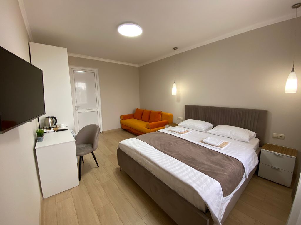 Вилла терраса приветствует дорогих гостей! Гостевой дом находится в тихом центре Геленджика. В шаговой доступности (менее 5 мин пешком) вся развитая инфраструктура: платные парковки, продуктовые магазины, аптеки, рынок, кафе, столовые, банки, остановка автотранспорта, парк аттракционов, торговые центры. Песчаный и галечный пляжи в шаговой доступности. Комфортабельные номера со всем необходимым: телевизор с плоским экраном, холодильник, кондиционер, санузел с душем. Все номера с выходом на террасу. Благоустроенная территория с водопадом, большой беседкой для отдыха, мангальной зоной(доплата)и спа бассейном с современной системой очистки воды путем электролиза. Бассейн оснащен системой подогрева воды в прохладный период. В период с 10. 11. 2024 г. По 20. 04 2025 г. На всей территории и в комнатах скоростной интернет (wi-fi). Есть оборудованная общая кухня, утюг, гладильная доска, стиральная машина. В гостевом доме есть апартаменты с собственной кухней, террасой и всем необходим для ком