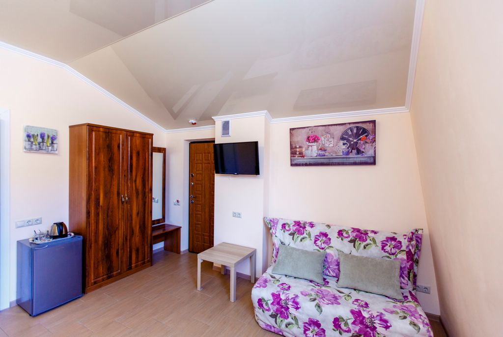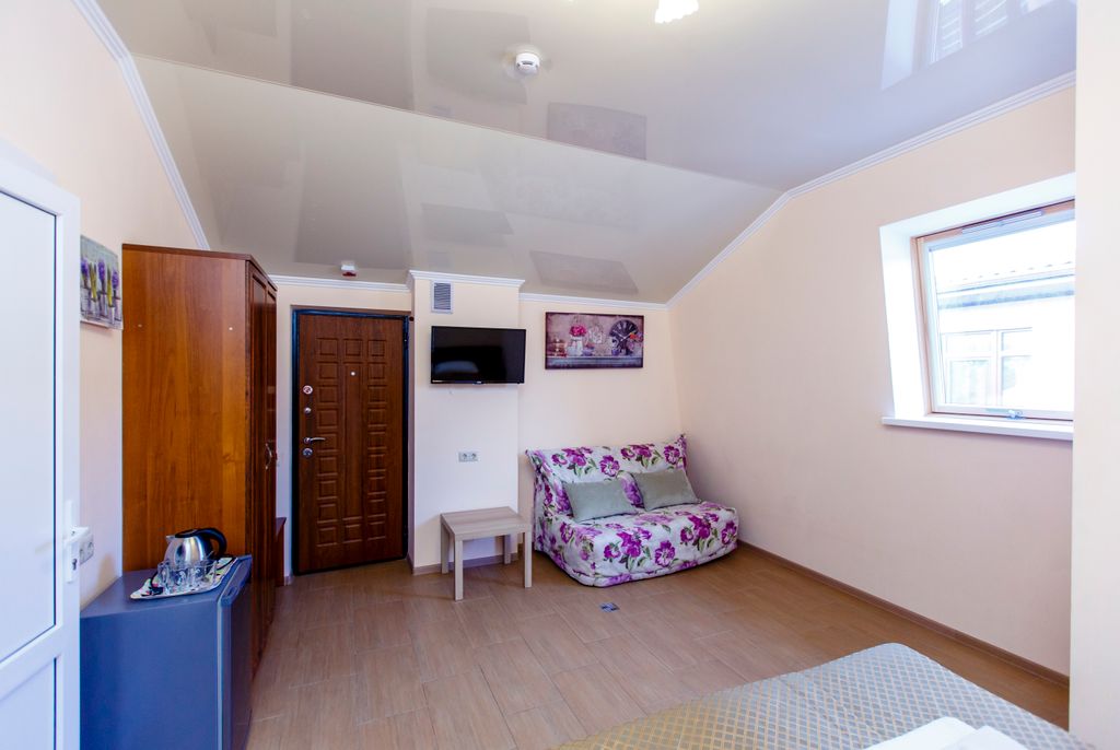 Гостевой дом по улице Тельмана, 23 находится в самом сердце черноморского курорта, вдали от шумных улиц. Здесь можно с головой окунуться в курортную атмосферу, забыв о домашних хлопотах. Современная мини-гостиница построена в 2012 году. К вашим услугам комфортабельные номера категории: стандарт, полулюкс и люкс. Каждый номер гостевого дома оформлен в современном стиле и оснащен телевизором с плоским экраном. Во всех номерах есть чайник и холодильник. Гости могут воспользоваться оборудованной общей кухней с необходимой посудой, чтобы приготовить блюда, или найти кафе в 5-ти минутах ходьбы от отеля. Дорога к морю займет не более пяти минут, так как гостевой дом расположен всего в 500 м от набережной с песочным пляжем. Рядом находится аквапарк "Дельфин". Бесплатная парковка около гостиницы под видео наблюдением (необходим предварительный заказ). Благодаря Wi-Fi интернету вы всегда будете на связи с друзьями и родными. В 2016 г. открыт новый корпус с комфортабельными номерами с
