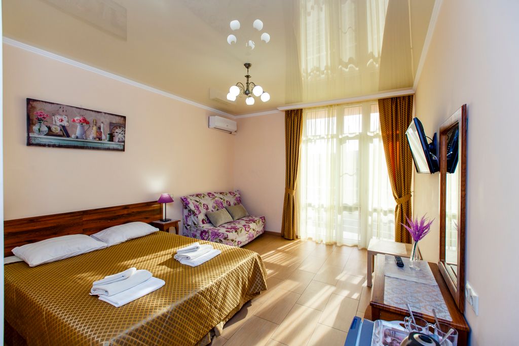Гостевой дом по улице Тельмана, 23 находится в самом сердце черноморского курорта, вдали от шумных улиц. Здесь можно с головой окунуться в курортную атмосферу, забыв о домашних хлопотах. Современная мини-гостиница построена в 2012 году. К вашим услугам комфортабельные номера категории: стандарт, полулюкс и люкс. Каждый номер гостевого дома оформлен в современном стиле и оснащен телевизором с плоским экраном. Во всех номерах есть чайник и холодильник. Гости могут воспользоваться оборудованной общей кухней с необходимой посудой, чтобы приготовить блюда, или найти кафе в 5-ти минутах ходьбы от отеля. Дорога к морю займет не более пяти минут, так как гостевой дом расположен всего в 500 м от набережной с песочным пляжем. Рядом находится аквапарк "Дельфин". Бесплатная парковка около гостиницы под видео наблюдением (необходим предварительный заказ). Благодаря Wi-Fi интернету вы всегда будете на связи с друзьями и родными. В 2016 г. открыт новый корпус с комфортабельными номерами с