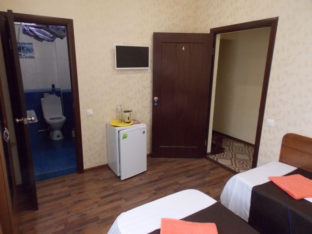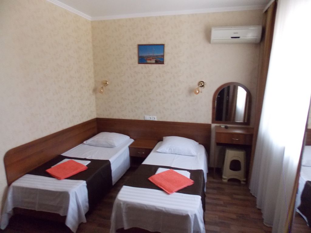 В городском районе Геленджика Тонкий мыс, в уютном, дворе с озеленением, беседками, мангалами, расположены: - трёхэтажный, с девятью комнатами категории стандарт различной площадью с видами на море и горы и в сад, в том числе: 6 двухместных комнат от 14 до 18 м2, одна трёхместная - 20 м2, одна четырёхместная — 30 м2, все оборудованы современными мебельными гарнитурами, ЖК телевизорами, холодильниками, сплит-системами. Санузлы в каждой комнате оборудованы унитазами, раковинами и небольшими ваннами; - оборудованный жилой цокольный этаж ; - отдельно стоящий двухэтажный двухкомнатный кирпичный дом, площадь каждой комнаты которого по 14 м2 + для каждой комнаты террасы по 12 м2с видом на море. Каждая оборудована мебельным гарнитуром, сплит-системой, ЖК телевизором и холодильником, санузлом; - второй отдельно стоящий дом 29м2 с одной четырёхместной комнатой, раздельным санузлом, ме