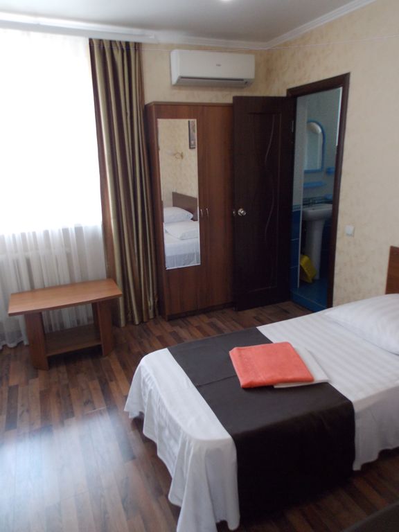В городском районе Геленджика Тонкий мыс, в уютном, дворе с озеленением, беседками, мангалами, расположены: - трёхэтажный, с девятью комнатами категории стандарт различной площадью с видами на море и горы и в сад, в том числе: 6 двухместных комнат от 14 до 18 м2, одна трёхместная - 20 м2, одна четырёхместная — 30 м2, все оборудованы современными мебельными гарнитурами, ЖК телевизорами, холодильниками, сплит-системами. Санузлы в каждой комнате оборудованы унитазами, раковинами и небольшими ваннами; - оборудованный жилой цокольный этаж ; - отдельно стоящий двухэтажный двухкомнатный кирпичный дом, площадь каждой комнаты которого по 14 м2 + для каждой комнаты террасы по 12 м2с видом на море. Каждая оборудована мебельным гарнитуром, сплит-системой, ЖК телевизором и холодильником, санузлом; - второй отдельно стоящий дом 29м2 с одной четырёхместной комнатой, раздельным санузлом, ме