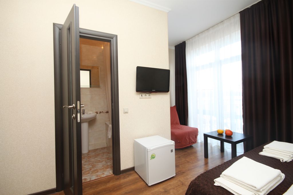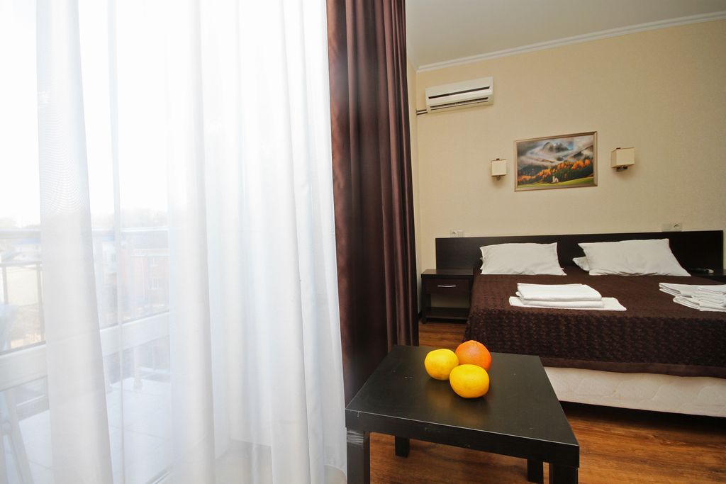 Расположение: в центральной части города, в 10 минутах от центрального песчаного пляжа, набережной, парка отдыха и аквапарка «Золотой пляж». Рядом продуктовый рынок, гипермаркет «Магнит», экскурсионное бюро, аптека, банкомат, магазины, продуктовый рынок, пиццерия, торговые центры. Описание: территория закрыта, видеонаблюдение, есть оборудованная кухня – можно готовить самим, двор со столиками, лавочки, качели, детский батут, навес для отдыха, столовая с домашней кухней, Wi-Fi. Современные комфортабельные номера. Парковка перед гостиницей – бесплатная, неохраняемая (места не заранее бронируются). Рядом платная автостоянка. В случае, если к вашему приезду свободного места на парковке не будет, можно поставить на автостоянку и переставить по мере освобождения.