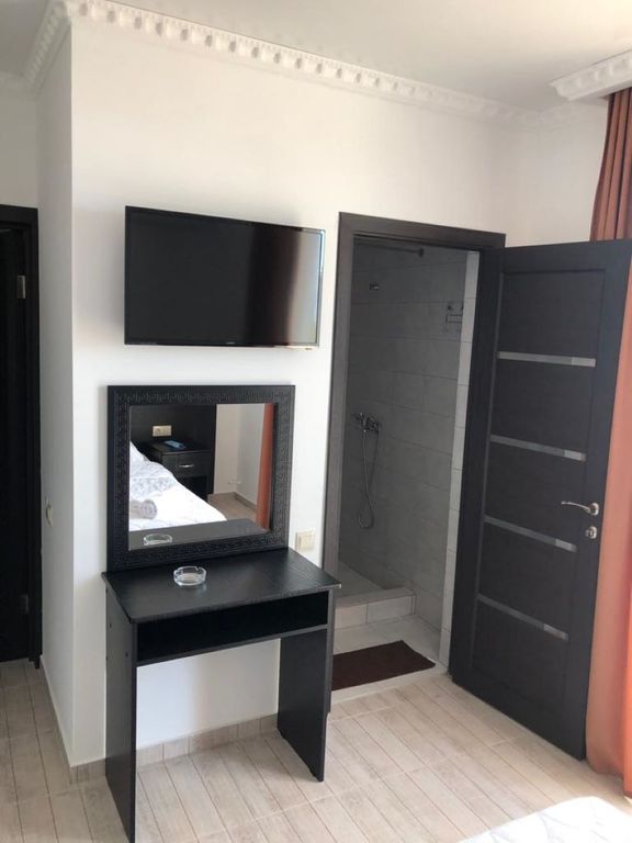 В отдельном помещении оборудована кухня для самообслуживания с кондиционером и телевизором, имеются две газовые плиты, два электрочайника, микроволновка, посуда, обеденные столы и стулья, гладильная доска и утюг. На территории: бассейн с подогревом, беседка, мангал.