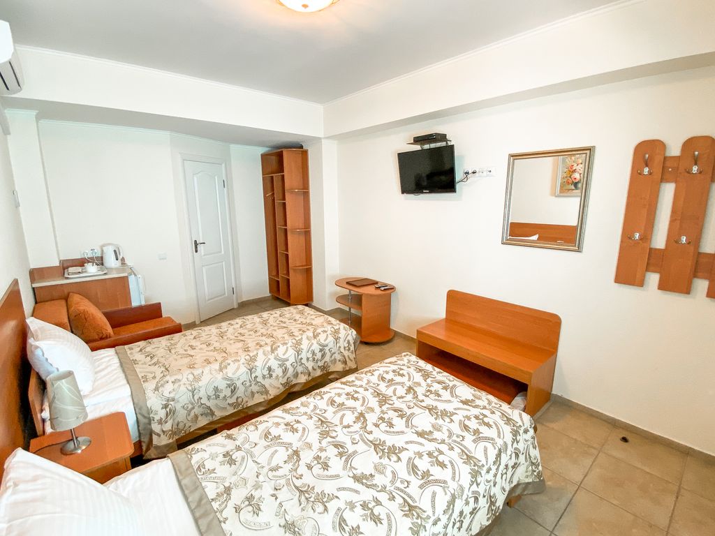 Частная вилла расположена на побережье Черного моря г. Севастополя в районе бухты Казачья. В шаговой доступности от виллы размещается музейный историко-мемориальный комплекс Героическим защитникам Севастополя «35-я береговая батарея». Вилла предлагает комфортабельные номера c современным дизайнерским интерьером, оснащены всем необходимым для полноценного отдыха в любое время года. На вилле созданы условия для семейного отдыха с детьми: парковая зона, детская спортивно-игровая площадка, настольный теннис, батут, бассейн. К Вашим услугам современно оснащенный конференц-зал, который предназначен для проведения таких мероприятий как: пресс-конференции, презентации, круглые столы, тренинги, деловые игры, семинары, бизнес встречи и др. Светлый и уютный зал комфортно вмещает до 40 человек. Конференц-зал оснащен современным оборудованием (входит в стоимость): экран, мультимедийный проектор, возможность подключения ноутбуков, DVD, аудиоплееров, Wi-Fi Internet, микшерный пульт, колонки, микрофон