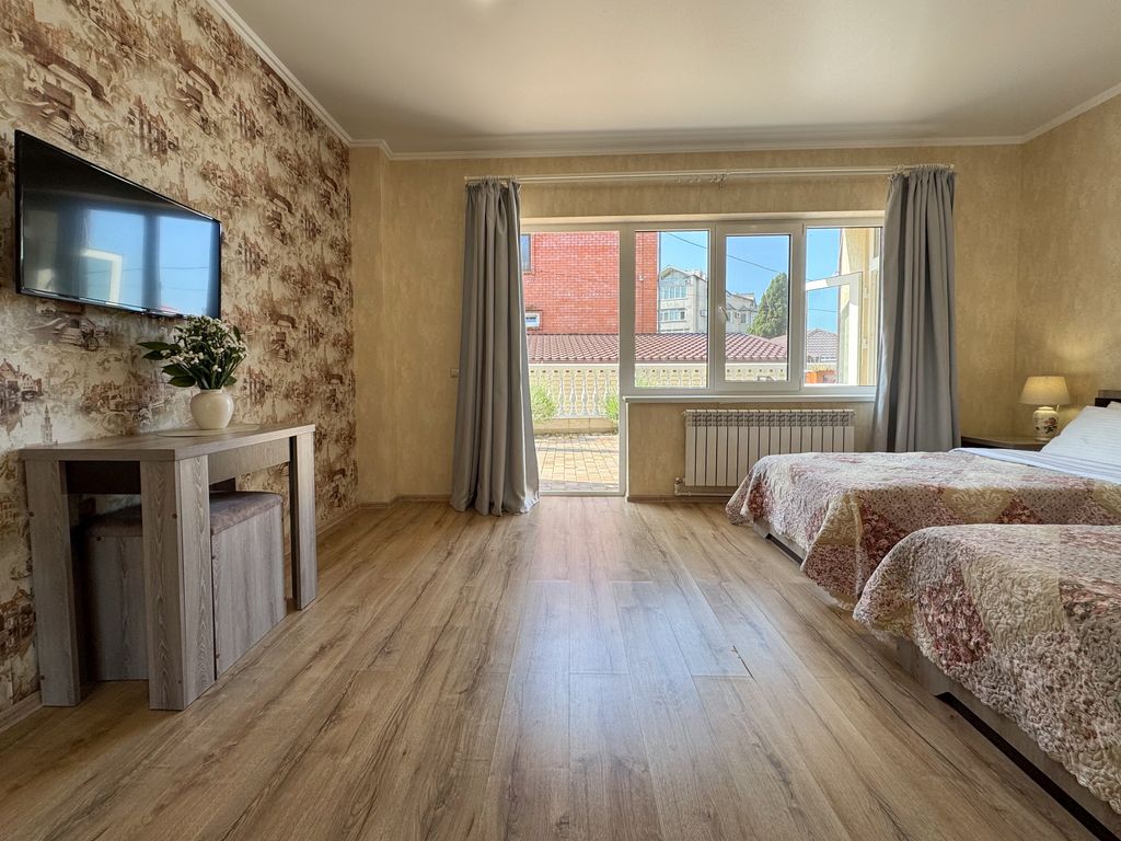 «Французский дом» – это современный уютный гостевой дом, расположенный в сердце Туапсе. К услугам гостей комфортабельные номера с видом на внутренний цветочный дворик и зону отдыха, часть из которых повышенной комфортности, оборудованные большими кроватями Queensize c ортопедическими матрасами, системой кондиционирования и большими телевизорами. В уютном цветочном дворике Вы сможете насладиться отдыхом под зонтиками. К услугам гостей летняя кухня с необходимым оснащением для приготовления напитков и разогрева пищи, холодильники, а также прачечная самообслуживания. Наши преимущества : -парковка на территории гостевого дома и прилегающих зонах -удобное расположение в центральной исторической части города -уютные тихие номера -уборка и смена постельного белья -телевизоры в каждом номере -помощь и рекомендации по организации отдыха (посещения достопримечательностей. Расстояние от центрального ж/д вокзала 1.5 км., это менее 5 мин на такси или 15 мин пешком. рядом с нами расположены: мо