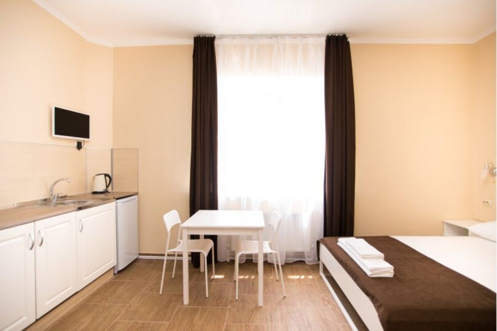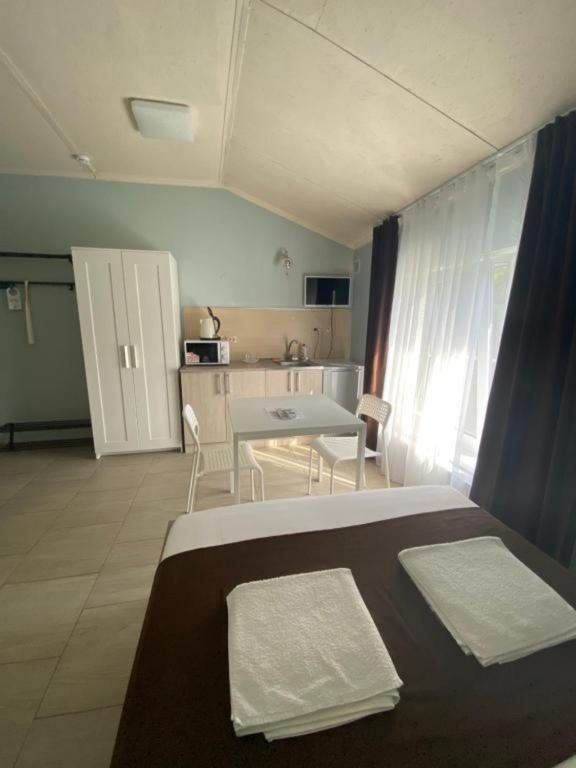 Гостевой дом расположен в сквере им. Гудовича, в тихом и спокойном парке Анапы. До моря можно дойти пешком за 5-7 минут(Центральный пляж), 12 минут до Галечного пляжа. Гостевой дом представляет из себя новый трехэтажный корпус с двором для отдыха со скамейками, детской площадкой, зоной барбекю, столовой. На первом, втором и третьем этаже расположились комфортабельные номера, которые представляют из себя-двухместные, двухместные с доп. местом и номер семейный. Все номера оснащены сан узлом, сплит системой, мини кухней, холодильником, телевизором, чайником, посудой. На территории располагается столовая, где по желанию вы можете приобрести завтрак, обед и ужин, по доступной цене. Также мы осуществляем трансфер (за дополнительную плату) от ж/д, аэропорта на комфортабельном автомобиле с кондиционером. В нашем доме, вы почувствуете себя по настоящему желанным гостем и непременно захотите еще вернуться к нам. Ведь у нас все по домашнему начиная от встречи, питания, отношения, время нахождения
