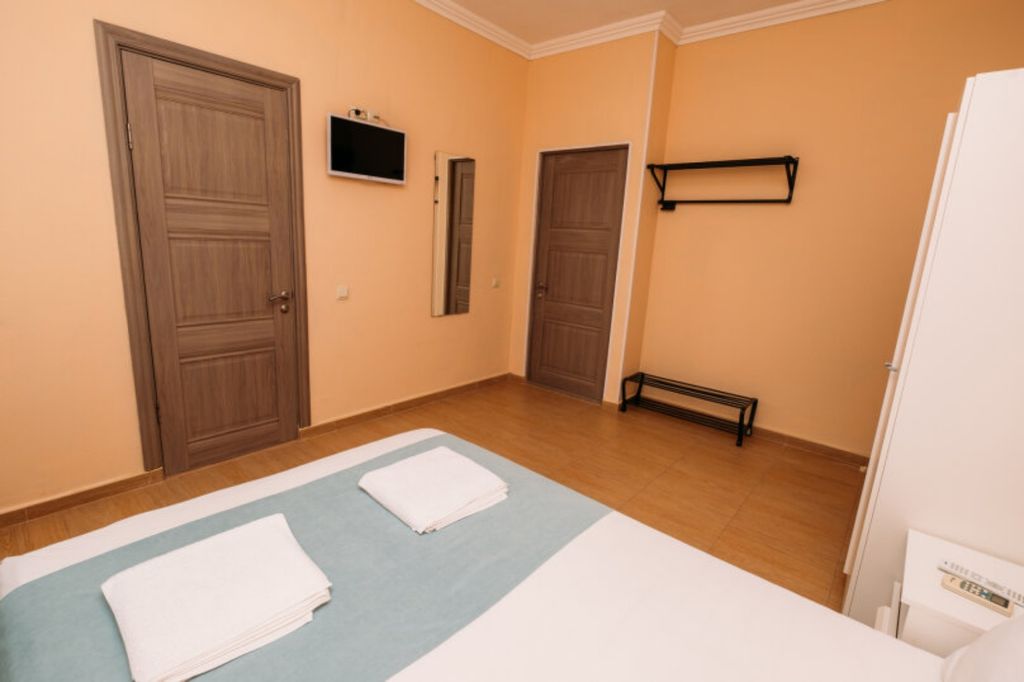 Гостевой дом расположен в сквере им. Гудовича, в тихом и спокойном парке Анапы. До моря можно дойти пешком за 5-7 минут(Центральный пляж), 12 минут до Галечного пляжа. Гостевой дом представляет из себя новый трехэтажный корпус с двором для отдыха со скамейками, детской площадкой, зоной барбекю, столовой. На первом, втором и третьем этаже расположились комфортабельные номера, которые представляют из себя-двухместные, двухместные с доп. местом и номер семейный. Все номера оснащены сан узлом, сплит системой, мини кухней, холодильником, телевизором, чайником, посудой. На территории располагается столовая, где по желанию вы можете приобрести завтрак, обед и ужин, по доступной цене. Также мы осуществляем трансфер (за дополнительную плату) от ж/д, аэропорта на комфортабельном автомобиле с кондиционером. В нашем доме, вы почувствуете себя по настоящему желанным гостем и непременно захотите еще вернуться к нам. Ведь у нас все по домашнему начиная от встречи, питания, отношения, время нахождения