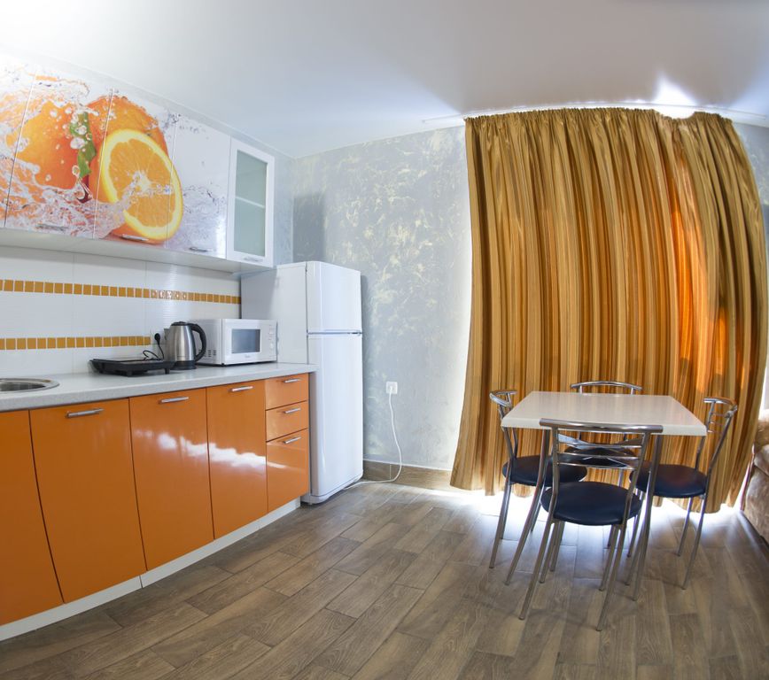 Гостевой дом «Золотая рыбка» находится в непосредственной близости (150 метров) от моря. Здесь простираются лучшие песчаные пляжи Евпатории: от бесплатных до VIP. На территории также есть свой бассейн. Семейный отдых в пансионате Евпатории «Золотая рыбка» организовать с комфортом просто. Всё, что нужно, рядом: Маршрутка и трамвайная остановка — 15 метров, Продуктовый магазин — 15 метров, Общественная столовая — 50 метров, Стоянка для автомобилей на территории гостевого дома. В гостевом доме есть апартаменты с кухней где предоставлены все условия для приготовления пищи людям которым необходимо своё питание для этого необходимо выбрать соответствующую категорию номера , есть также недалеко расположенные столовые и кафе где можно также вкусно поесть. Чтобы семейный отдых в пансионате Евпатории (см. отзывы) «Золотая рыбка» был полноценным, мы позаботились о возможности самостоятельного приготовления пищи для Родителей с маленькими детьми они оценили оборудование и удобство кухни «Зо