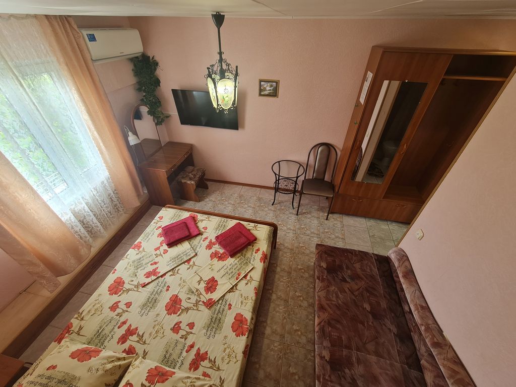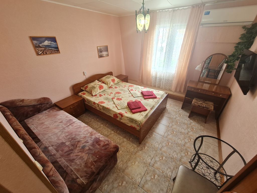 Наш гостевой дом «Виола» в курортном поселке Витязево, Краснодарский край, в 10 км от города Анапа. На территории имеется: уютный и очень зеленый двор, в котором свежо даже в летний зной, детская площадка, места где можно с комфортом загорать на шезлонгах, множество зон со столиками в которых можно с комфортом провести время с чашечкой кофе либо бокалом вина, на всей территории действует Wi-Fi. В распоряжении гостей номера оснащенные всей необходимой мебелью, телевизором, сплит-системой, холодильником, в ванной комнате есть душ, раковина, туалет, зеркало. Гости могут готовить на общей кухне, оснащенной всем необходимым оборудованием. Недалеко от гостевого дома находятся продуктовые магазины, экскурсионные бюро, рынок, парк аттракционов, аптеки, кафе, рестораны, в 15-20 минутах ходьбы песчаный пляж.