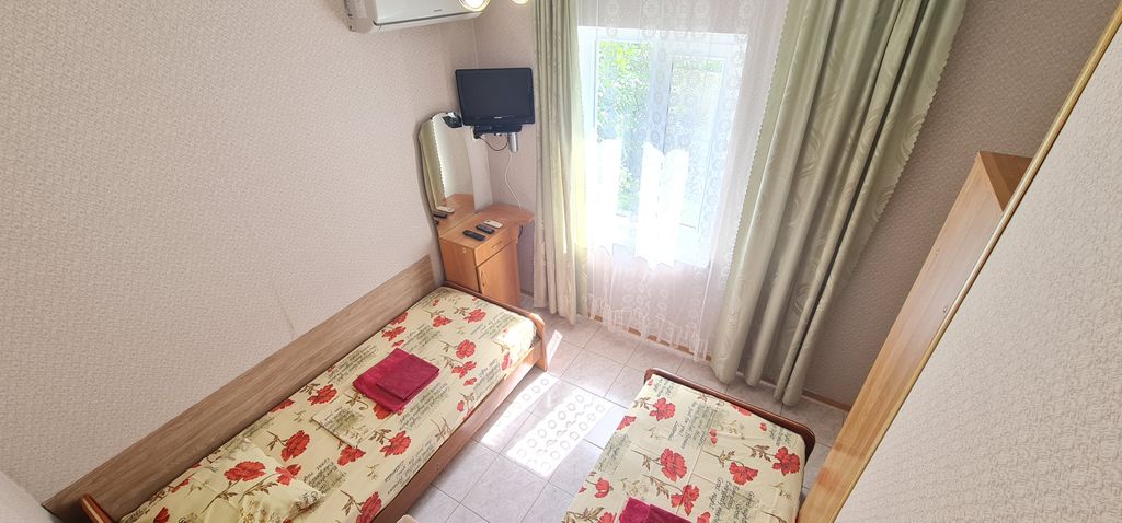 Наш гостевой дом «Виола» в курортном поселке Витязево, Краснодарский край, в 10 км от города Анапа. На территории имеется: уютный и очень зеленый двор, в котором свежо даже в летний зной, детская площадка, места где можно с комфортом загорать на шезлонгах, множество зон со столиками в которых можно с комфортом провести время с чашечкой кофе либо бокалом вина, на всей территории действует Wi-Fi. В распоряжении гостей номера оснащенные всей необходимой мебелью, телевизором, сплит-системой, холодильником, в ванной комнате есть душ, раковина, туалет, зеркало. Гости могут готовить на общей кухне, оснащенной всем необходимым оборудованием. Недалеко от гостевого дома находятся продуктовые магазины, экскурсионные бюро, рынок, парк аттракционов, аптеки, кафе, рестораны, в 15-20 минутах ходьбы песчаный пляж.