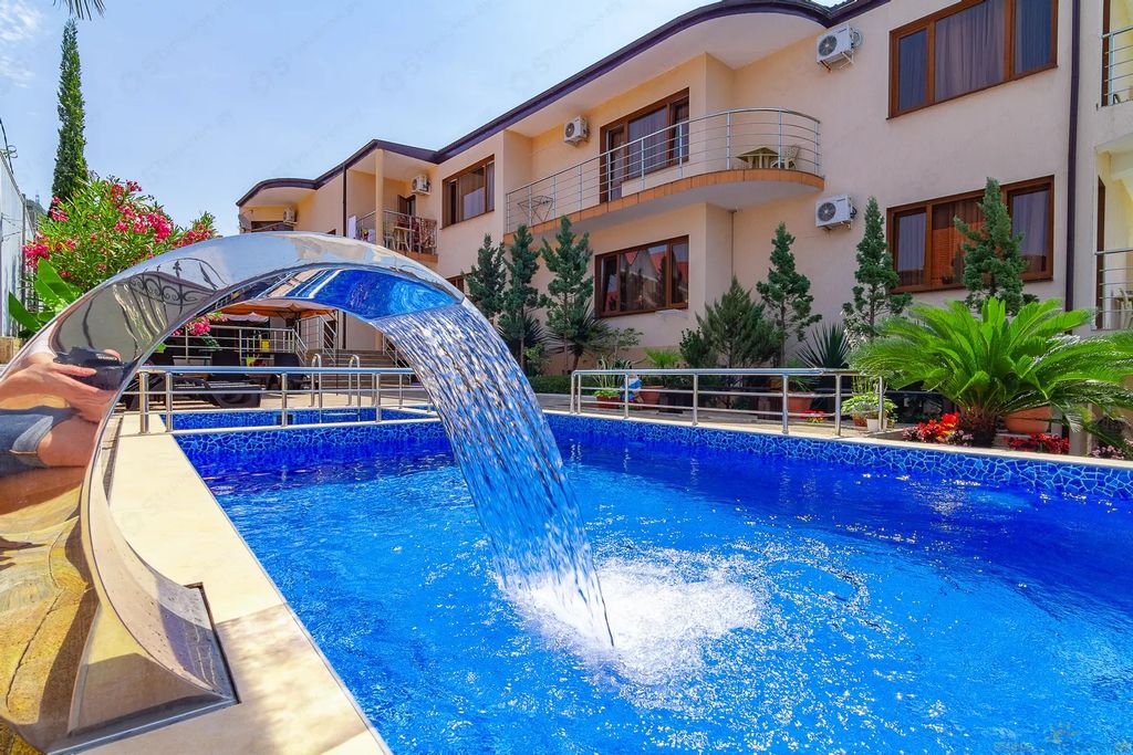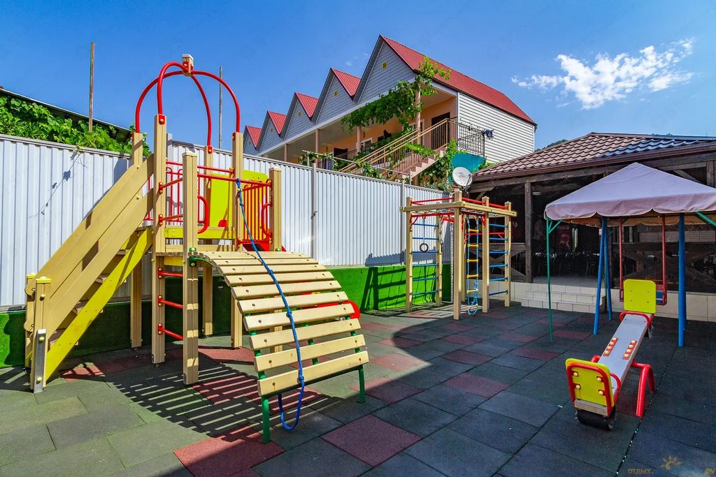 На пляже предоставляется весь спектр для комфортного отдыха, работает столовая, водные развлечения, рыбалка. Обеденная зона представлена летней кухней, с необходимой посудой и столовыми принадлежностями, а также оборудована холодильными шкафами для хранения продуктов. Есть мангальная зона. На территории гостевого дома курить разрешено в специально отведенных местах.