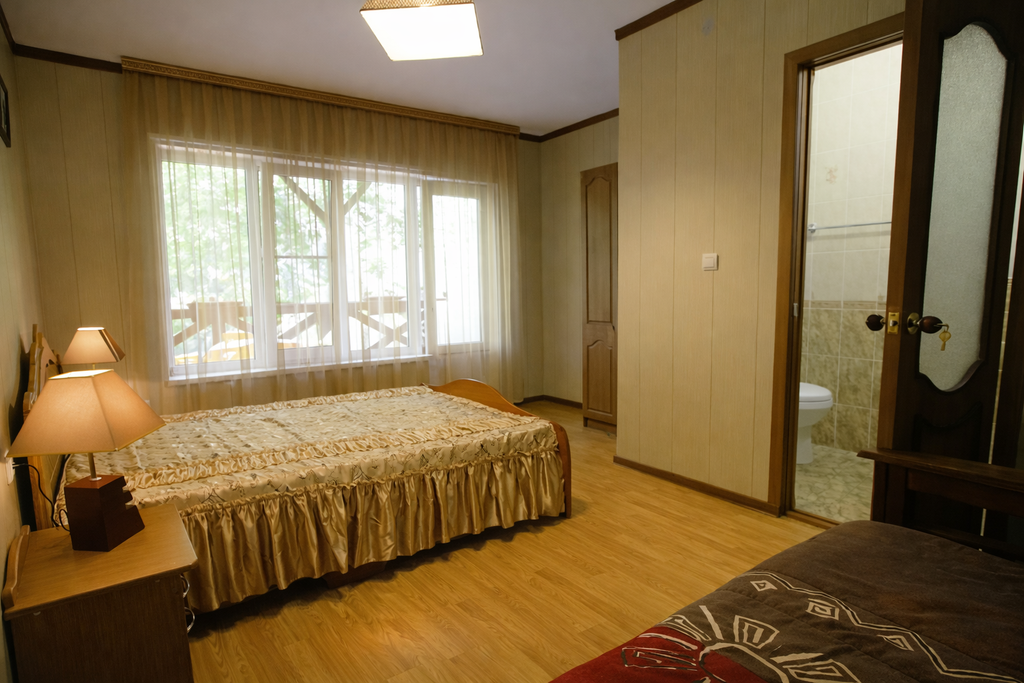 Гостевой дом находится недалеко от центра Кабардинки (5 минут ходьбы). До моря 10-12 минут пешком через рынок, центр, -магазины и кафе. Дороги асфальтированы и освещаются. К услугам гостей просторные, современные номера с новой качественной мебелью и сантехникой. Все номера с удобствами, в каждом номере спутниковое ТВ, общие кухни на каждом этаже, общая гладильная комната. Но главное достоинство ВИталии — это прекрасная просторная и очень зелёная территория с детской площадкой, качелями для детей, турником и песочницей. Для каждого номера предусмотрено место для отдыха на просторной веранде в тени и зелени с видом на розарий и фонтанчик.
