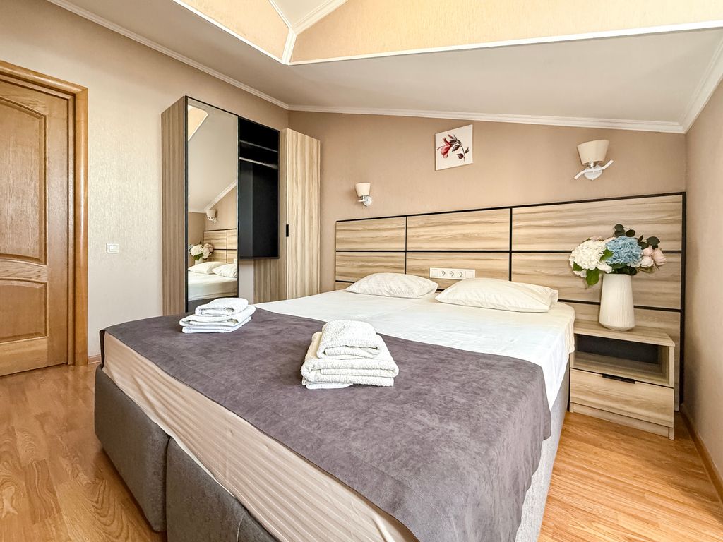 Гостевой дом "Ной плюс" находится в центральной части Геленджика, в 600 м (12 мин неспешным шагом) от набережной и пляжа Солнечный берег и лок Лазурный, мелкая галька! В летний период работает столовая. Завтрак включен. Часть номеров с балконом и видом на море. Рядом с отелем бесплатная стоянка на 20 авто. Размещение предлагается в комфортабельных номерах с свежим ремонтом (январь 2026) и новой мебелью, рассчитаны на проживание от двух до пяти человек. В 50 м находятся сетевые магазины к&б, пятерочка, магнит, агрокомплекс (мясной), живое пиво, массаж, cтоловыe, кaфe, аптеки, банкоматы, прокат авто, остановка общественного транспорта! Аквапарк "Золотая бухта" 900 м, дельфинарий 900 м, "Сафари-парк" 1 км, аэропорт 3 км, жд вокзал в Новороссийске 30км, концертный зал "Арена" 1 км. В каждом номере свой санузел, душ, кондиционер, жк телевизор, холодильник, набор посуды.